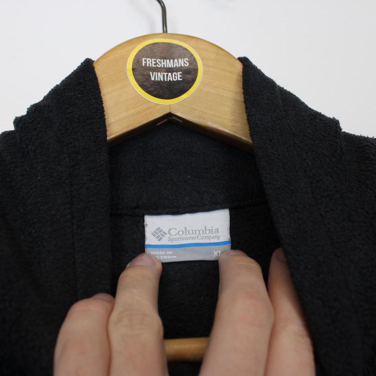 Vintage 00's Columbia Black Full Zip Spellout Fleece Jacket Size on label: XL Our recommended size: Small Pit to pit (inches): 22 Length (inches): 25 All products listed are vintage unless stated otherwise in the description. These items are pre-loved and pre-worn, resulting in small signs of wear and minor fading. We think this adds to their unique authenticity, but if an item has any major flaws these will be stated below. Please contact us if you have any further questions!