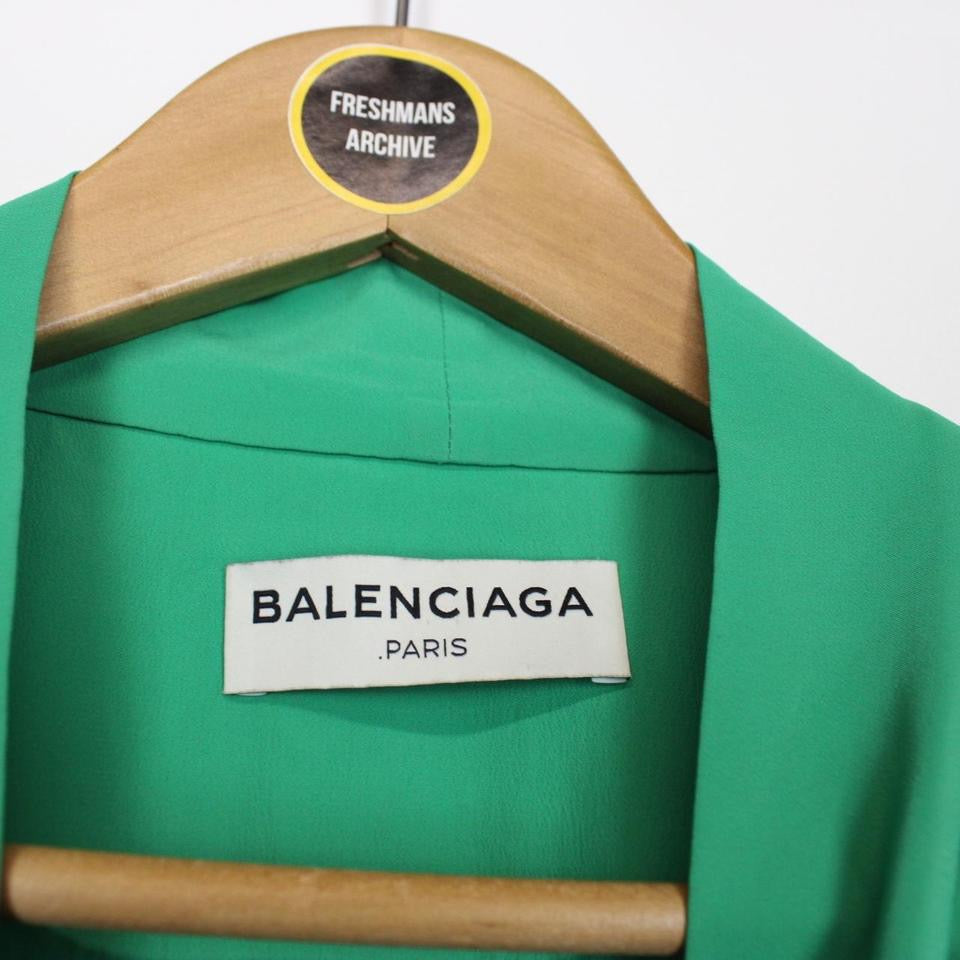 Balenciaga Paris Green Silk Blend Tie Neck Long Sleeve Blouse