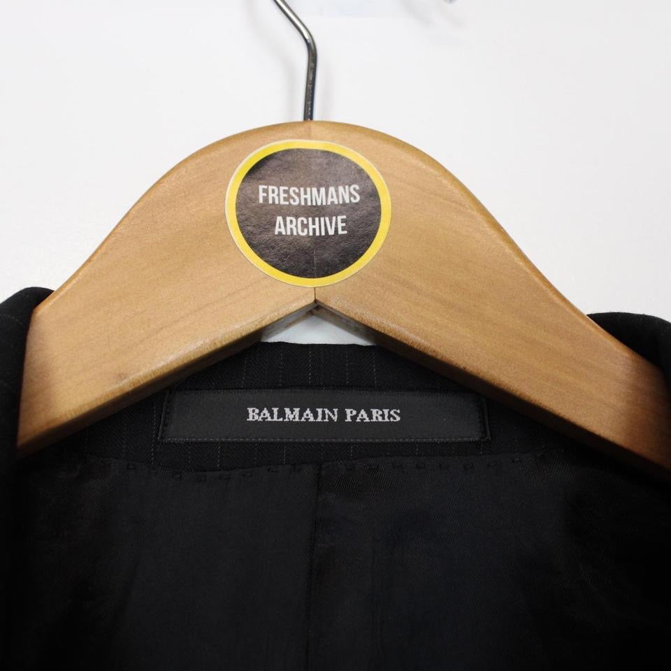 Balmain Paris Black and White Pinstripe Wool Single Breasted Blazer Jacket