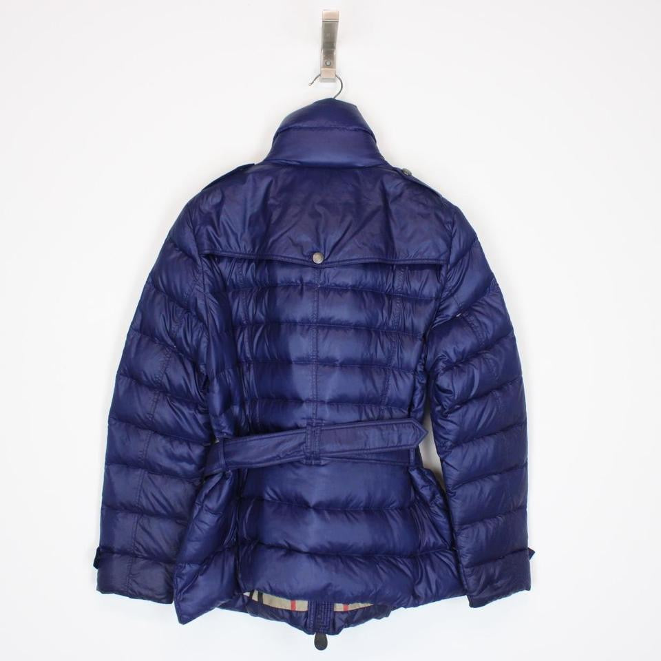 Burberry Brit Blue and Beige Nova Check Lined Belted Down Jacket