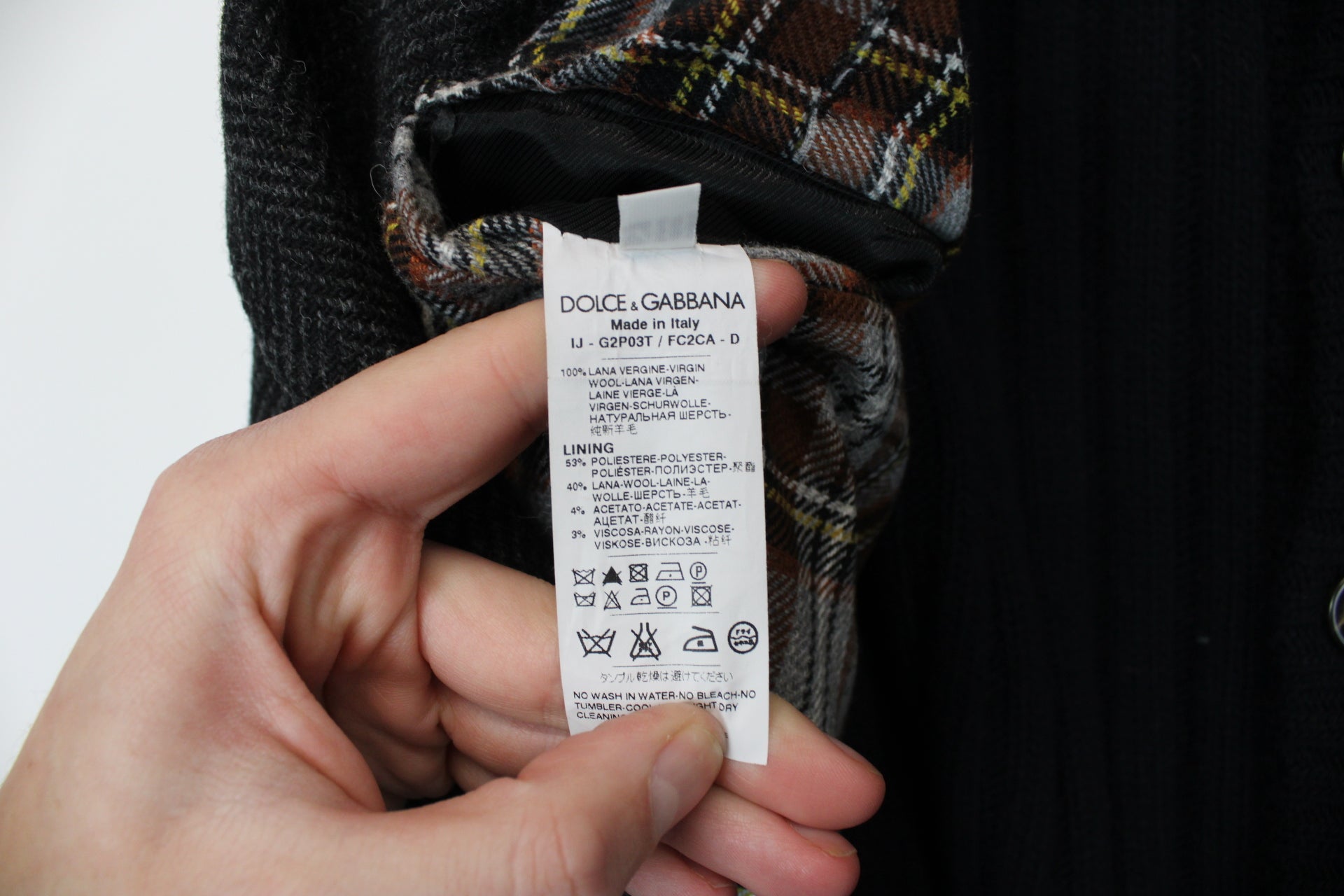 Dolce & Gabbana Grey Virgin Wool Coat with Wool Cardigan Lining