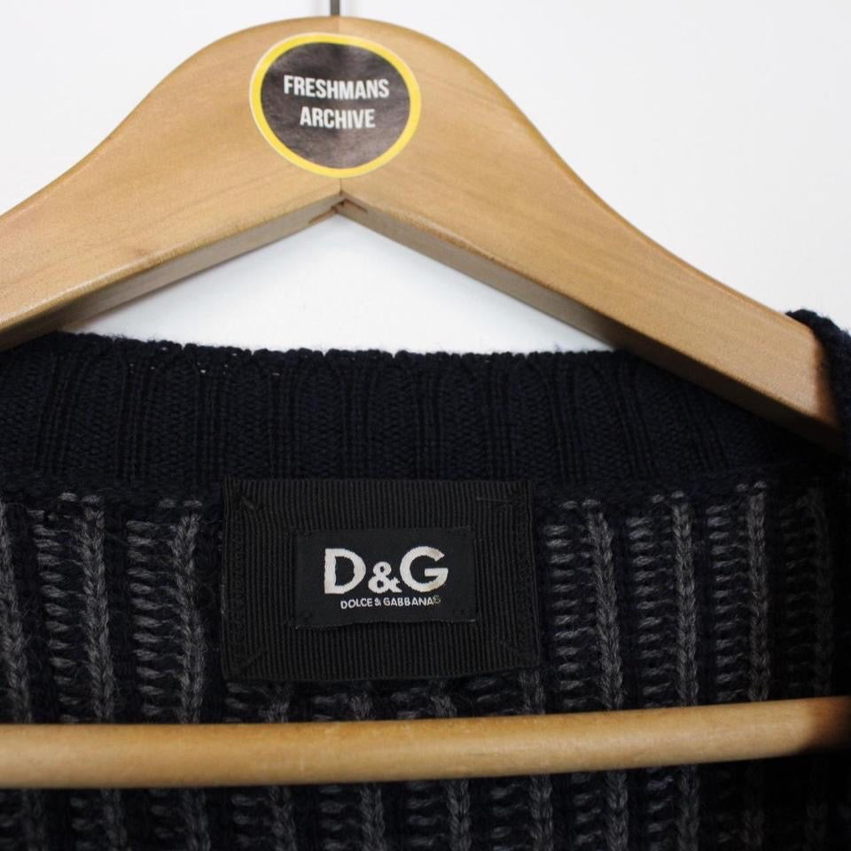 Dolce and Gabbana Navy Blue and Grey Ribbed Wool Knit Sweatshirt Jumper
