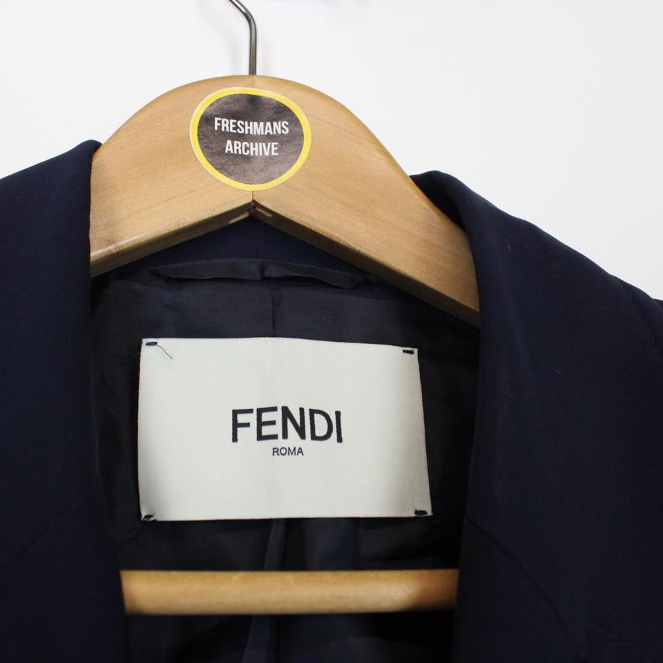 Fendi Navy Blue Wool Blend Single Breasted Blazer Jacket