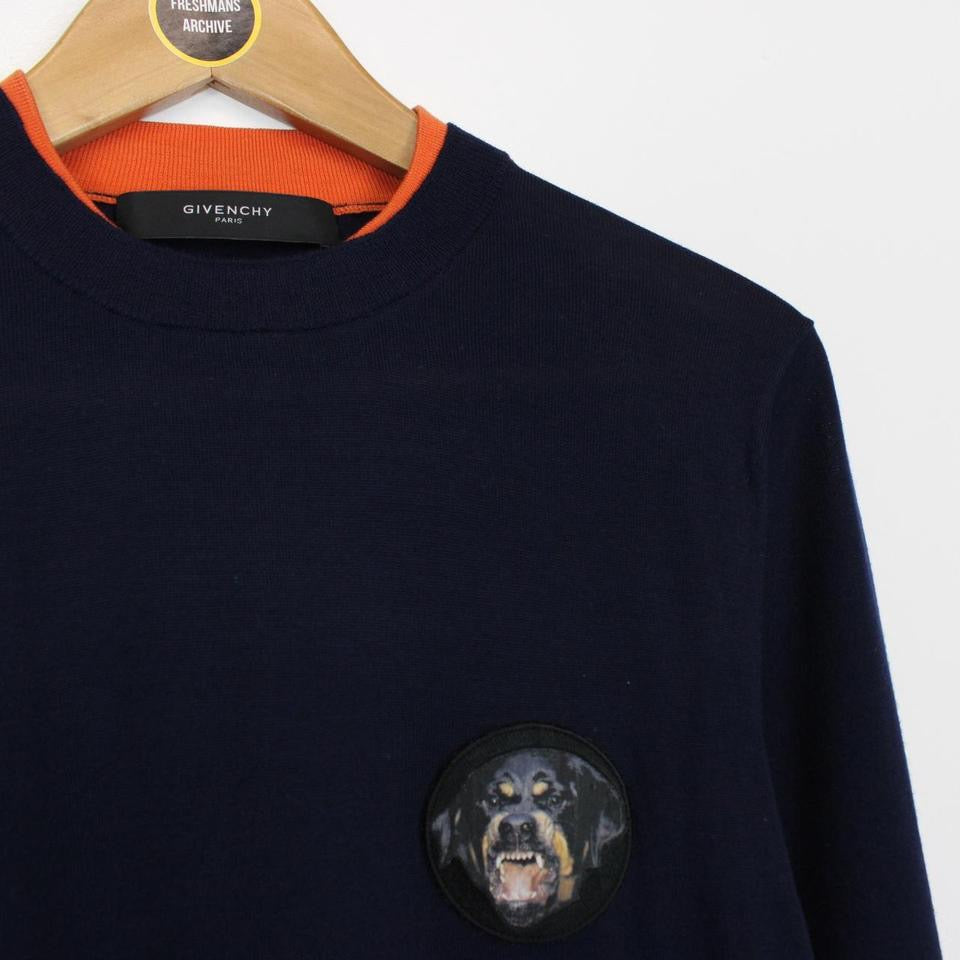 Givenchy Paris Rottweiler Navy Blue and Orange Wool Knit Jumper