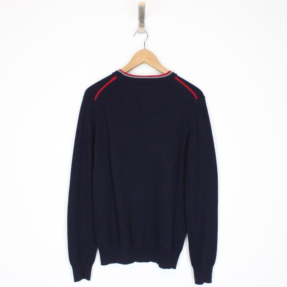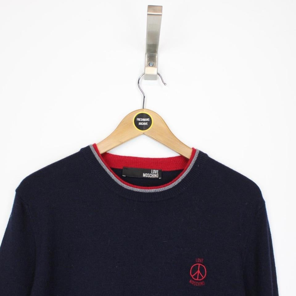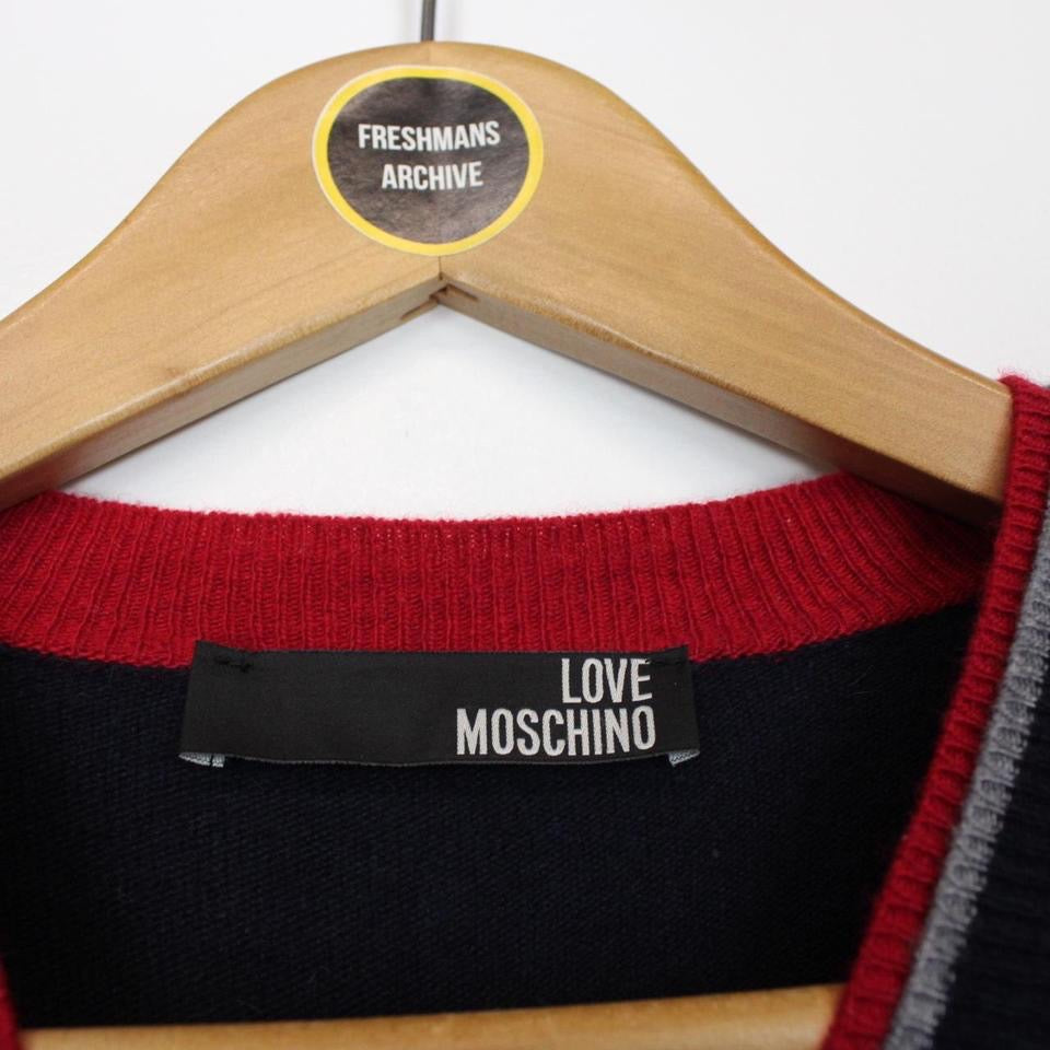 Love Moschino Navy Blue and Red Virgin Wool Knit Sweatshirt Jumper