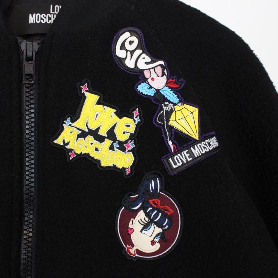 Love Moschino Black Full Zip Wool/Polyester Patch Bomber Jacket