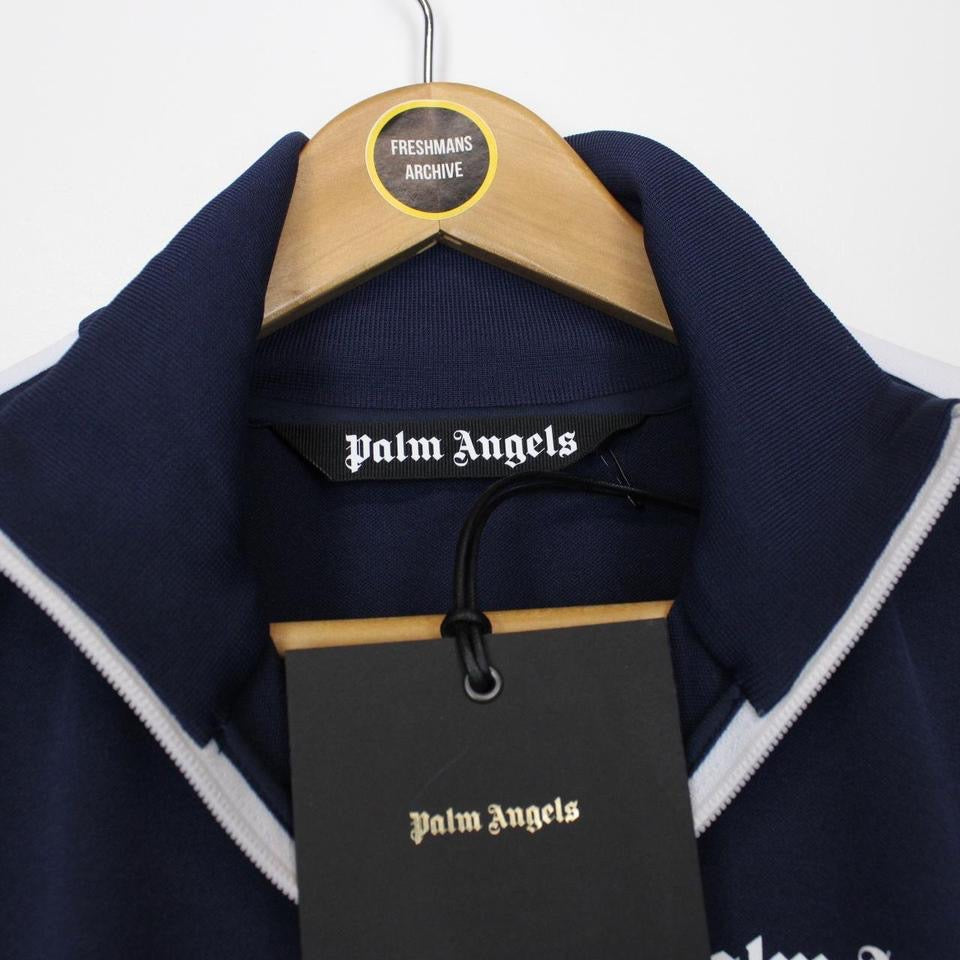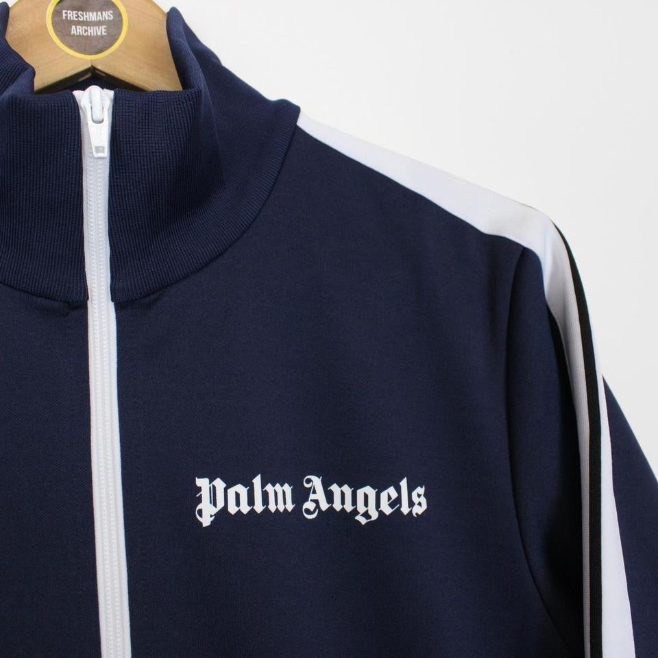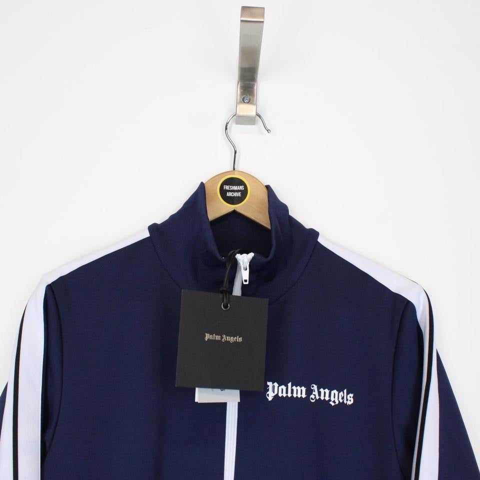 Palm Angels Navy Blue and White Full Zip Spellout Track Jacket