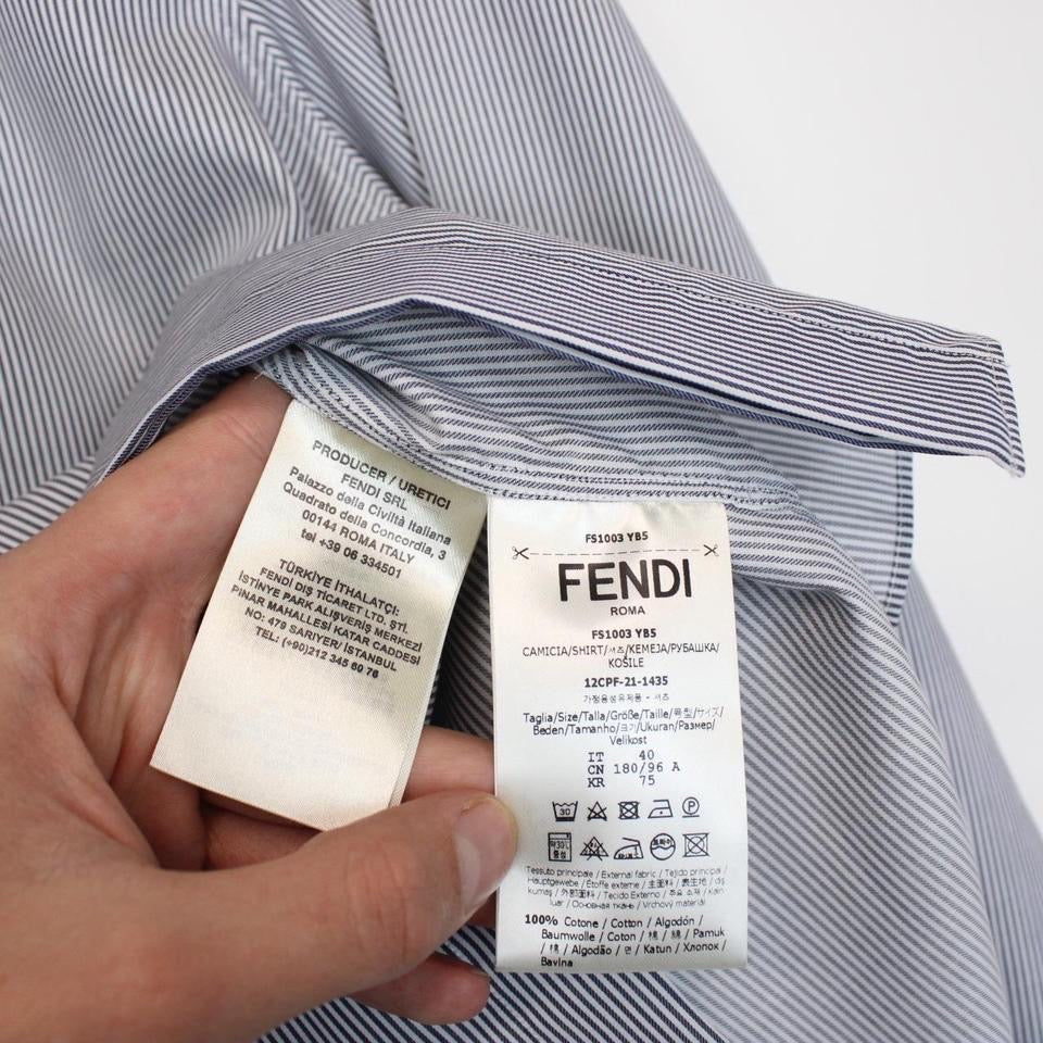 Fendi Navy Blue and White Striped Long Sleeve Cotton Formal Shirt