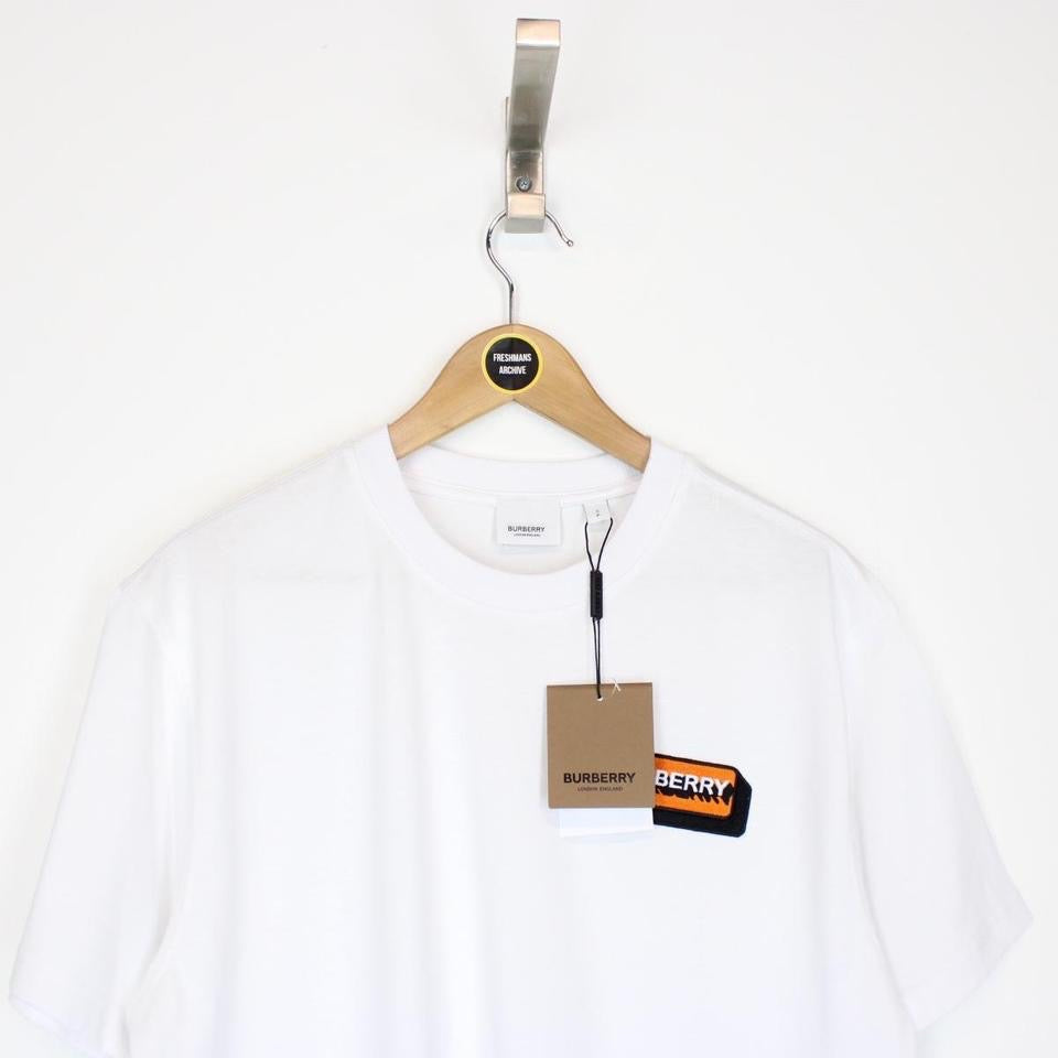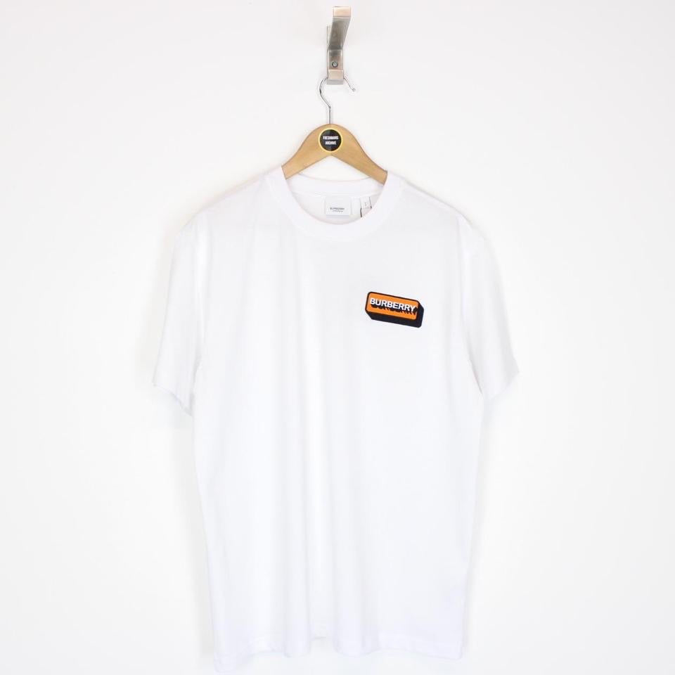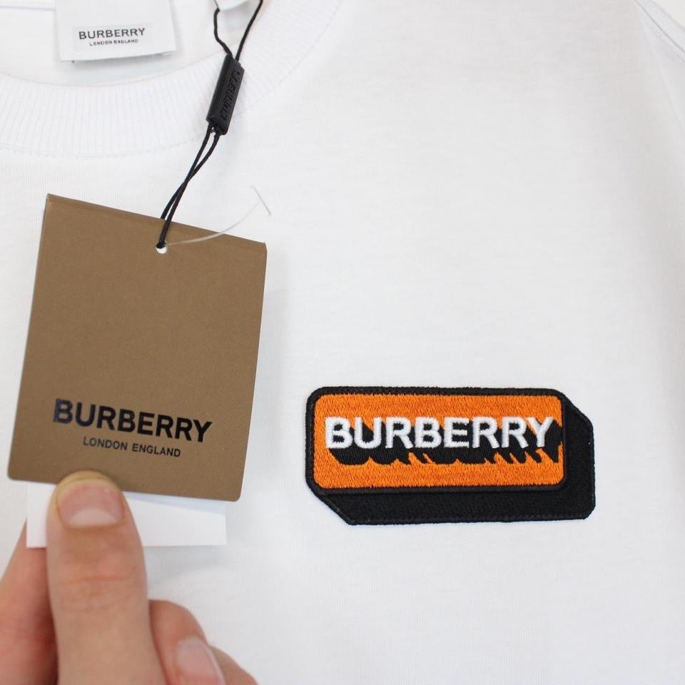 Burberry White and Orange Short Sleeve Kay Logo Spellout T-Shirt