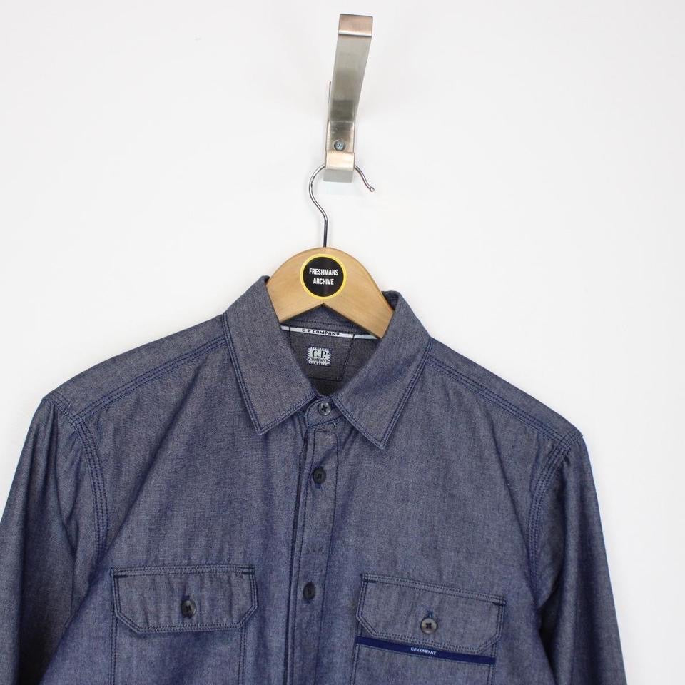 CP Company Blue Spellout Long Sleeve Cotton Overshirt