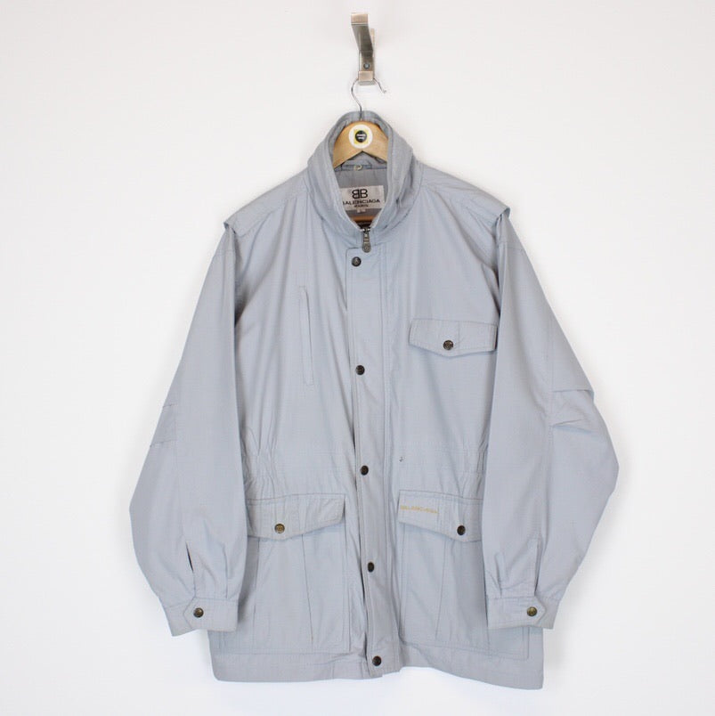 Vintage 90's Balenciaga Paris Grey Spellout Multi Pocket Tactical Jacket Size on label: Large Our recommended size: Large Pit to pit (inches): 24 Length (inches): 30.5 All products listed are vintage unless stated otherwise in the description. These items are pre-loved and pre-worn, resulting in small signs of wear and minor fading. We think this adds to their unique authenticity, but if an item has any major flaws these will be stated below. - The jacket does have a mark to the front and also to the back of the collar, this is reflected in the price Please contact us if you have any further questions!