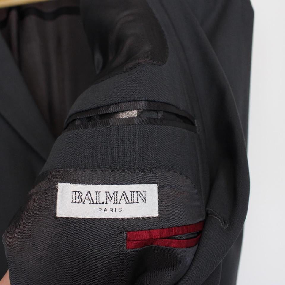 Vintage Balmain Paris Dark Grey Wool Single Breasted Blazer Jacket
