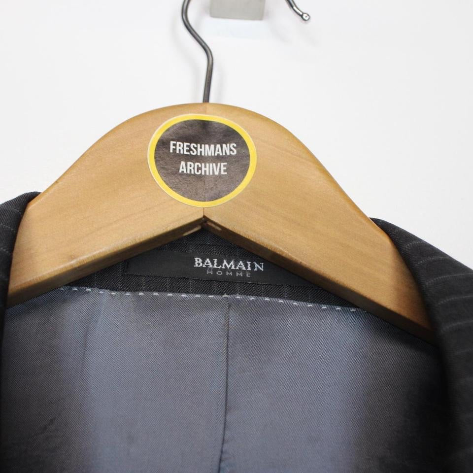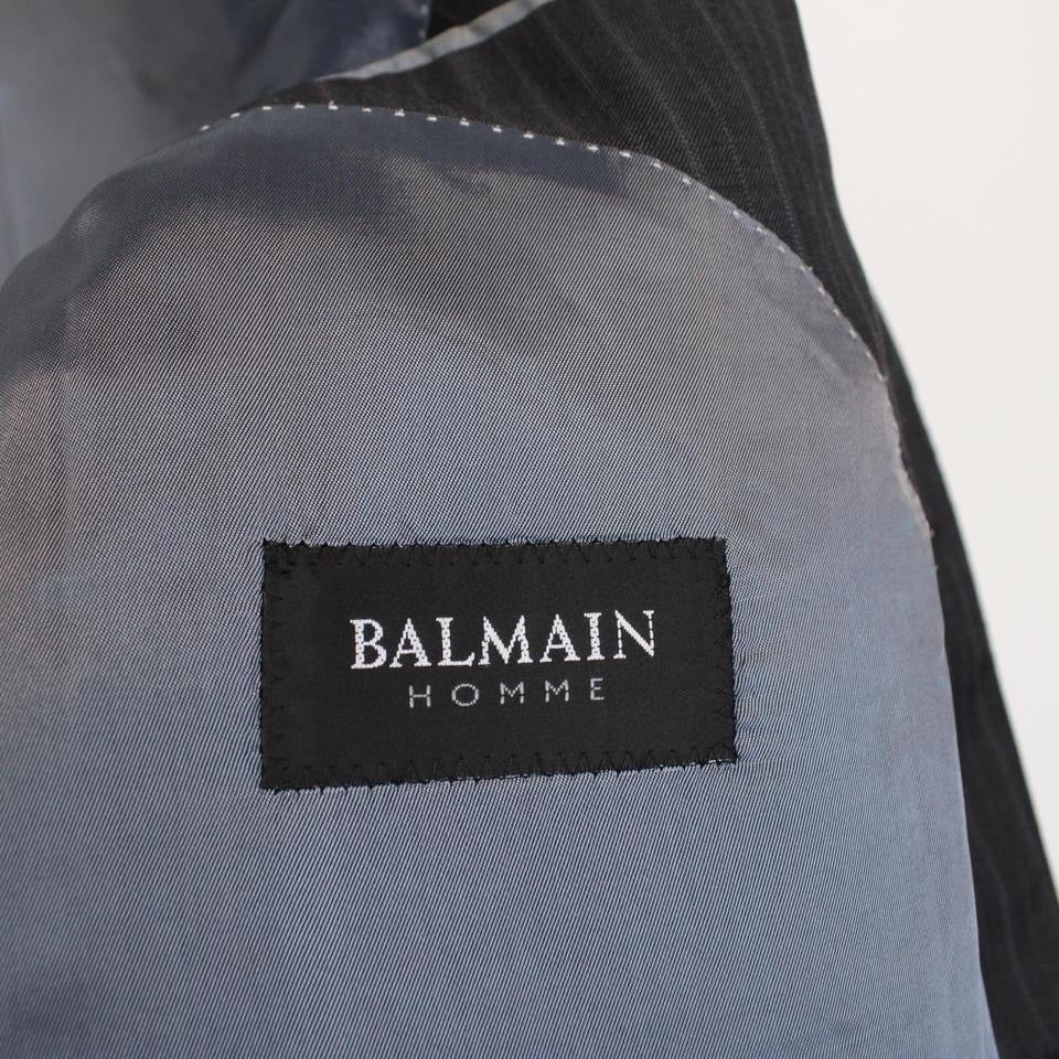 Vintage Balmain Paris Dark Grey Pinstripe Wool Single Breasted Blazer Jacket