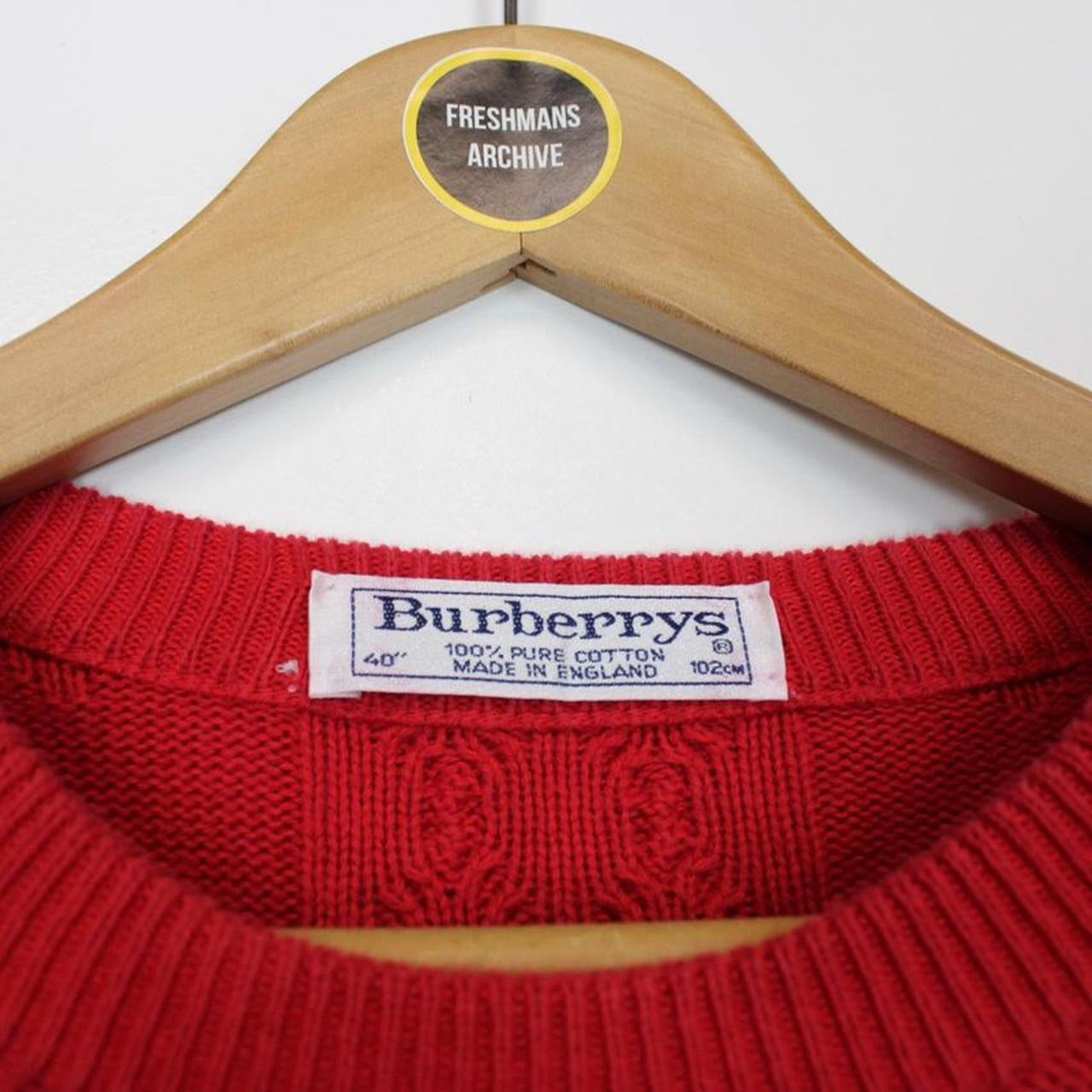 Vintage 90s Burberry Red Cable Knit Spellout Sweatshirt Jumper
