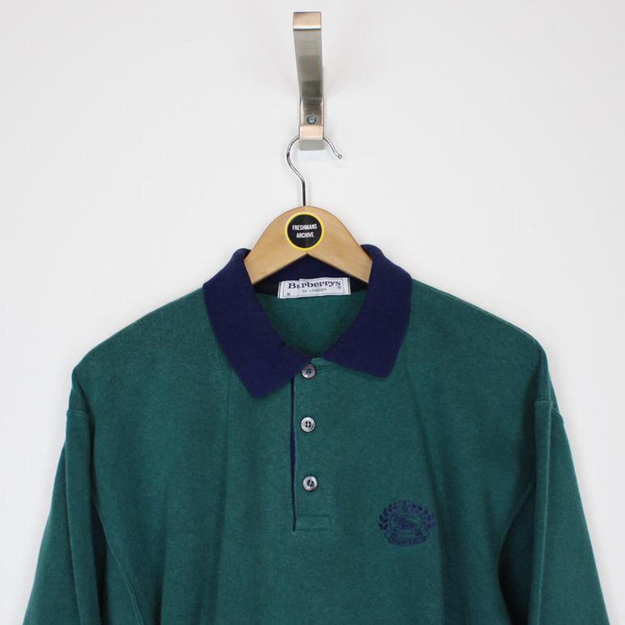 Vintage 90's Burberry Green Pullover Collared Spellout Sweatshirt Jumper Size on label: Small Our recommended size: Small Pit to pit (inches): 22 Length (inches): 24 All products listed are vintage unless stated otherwise in the description. These items are pre-loved and pre-worn, resulting in small signs of wear and minor fading. We think this adds to their unique authenticity, but if an item has any major flaws these will be stated below. Please contact us if you have any further questions!