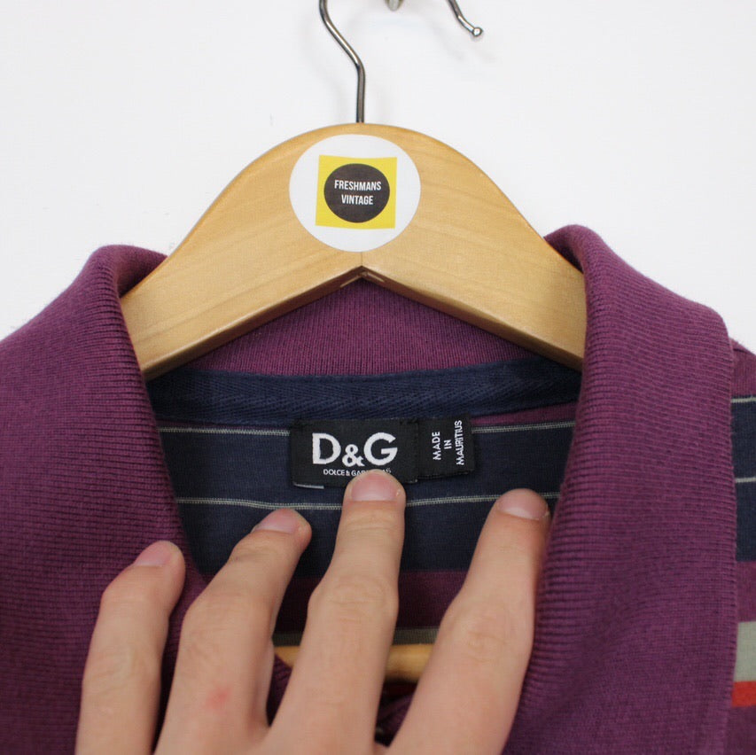 Vintage Dolce and Gabbana D&G Multicoloured Striped Short Sleeve Spellout Polo Shirt Size on label: Small Our recommended size: XS/Small Pit to pit (inches): 17.5 Length (inches): 25.5 All products listed are vintage unless stated otherwise in the description. These items are pre-loved and pre-worn, resulting in small signs of wear and minor fading. We think this adds to their unique authenticity, but if an item has any major flaws these will be stated below. Please contact us if you have any further questions!