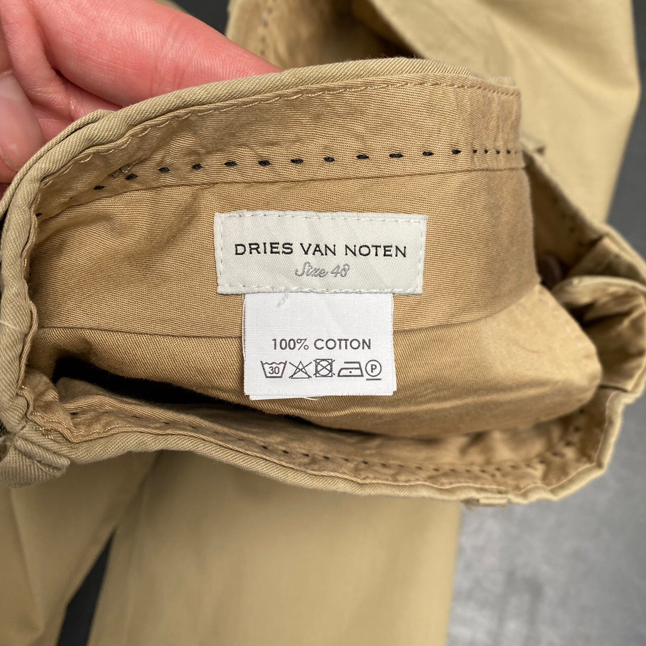 Vintage Dries Van Noten Beige Tapered Fit Trousers Size on label: 48 Our recommended size: Medium Waist (inches): 34 Inside Leg (inches): 29 All products listed are vintage unless stated otherwise in the description. These items are pre-loved and pre-worn, resulting in small signs of wear and minor fading. We think this adds to their unique authenticity, but if an item has any major flaws these will be stated below. Please contact us if you have any further questions!