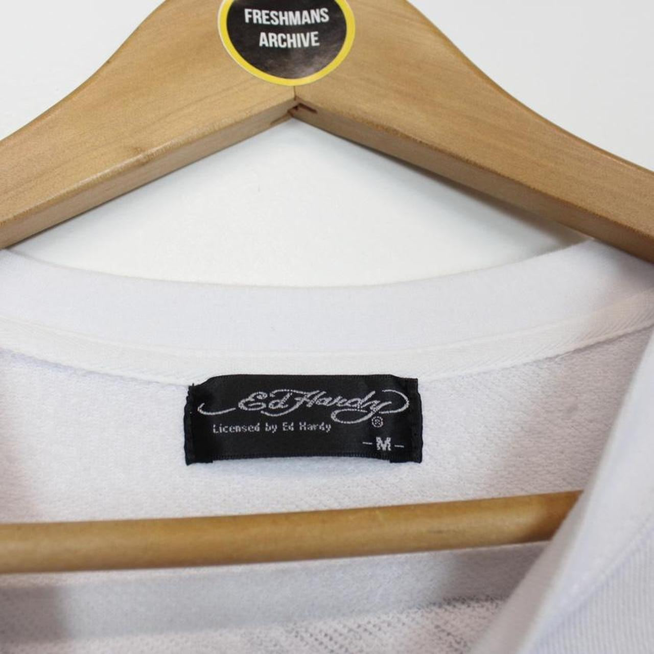 Vintage Ed Hardy Y2K White Crew Neck Graphic Spellout Sweatshirt Jumper