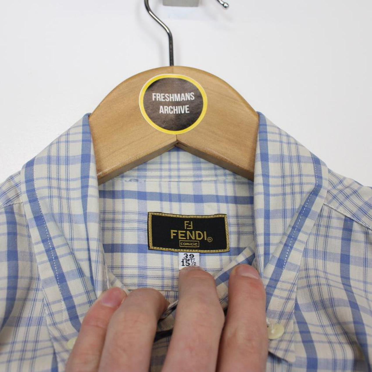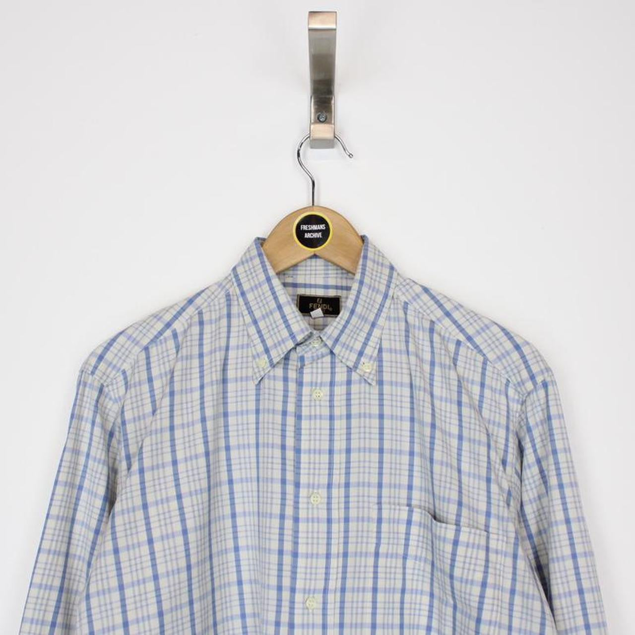 Vintage 90's Fendi Cream and Blue Checked Long Sleeve Shirt