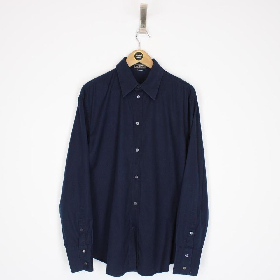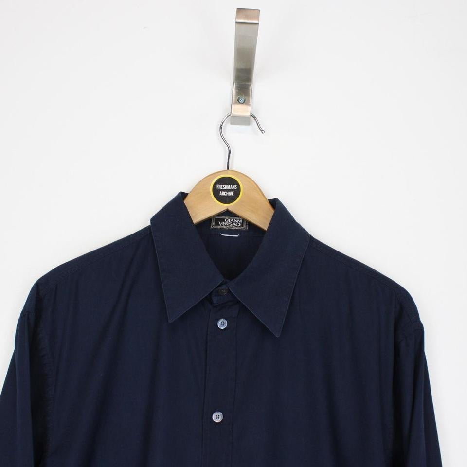 Vintage 90s Gianni Versace Navy Blue Long Sleeve Cotton Shirt