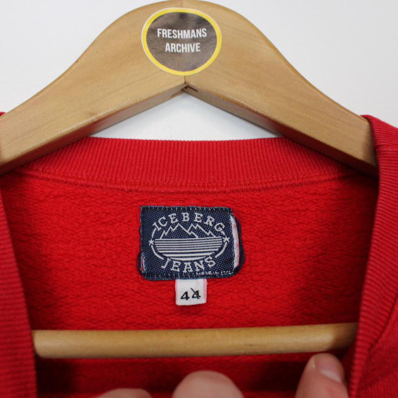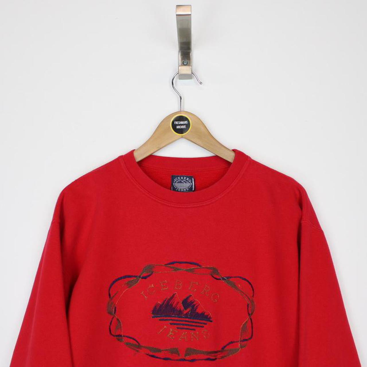 Vintage 90s Iceberg Jeans Red Crew Neck Spellout Sweatshirt
