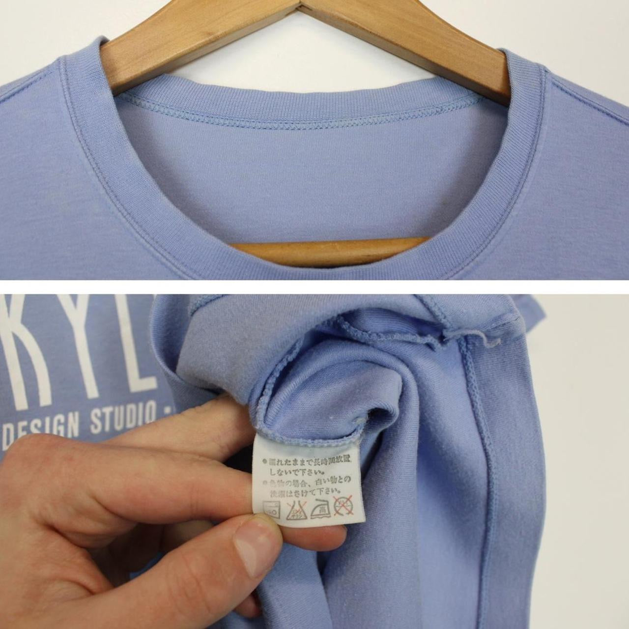 Vintage 80s Issey Miyake Skyline Blue and White Short Sleeve Spellout T-Shirt