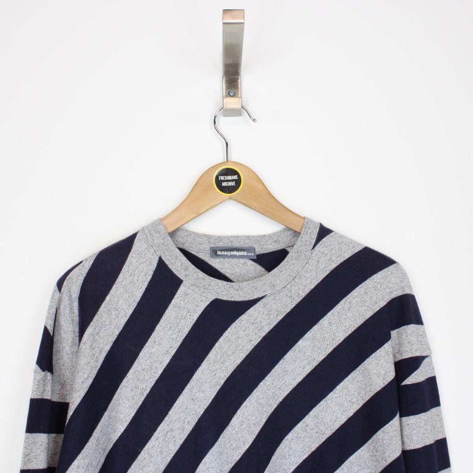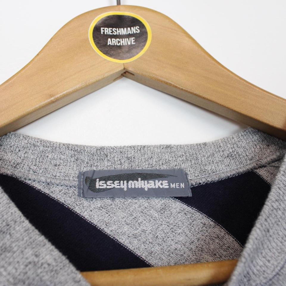 Vintage 90s Issey Miyake Grey and Navy Blue Striped Sweatshirt Jumper