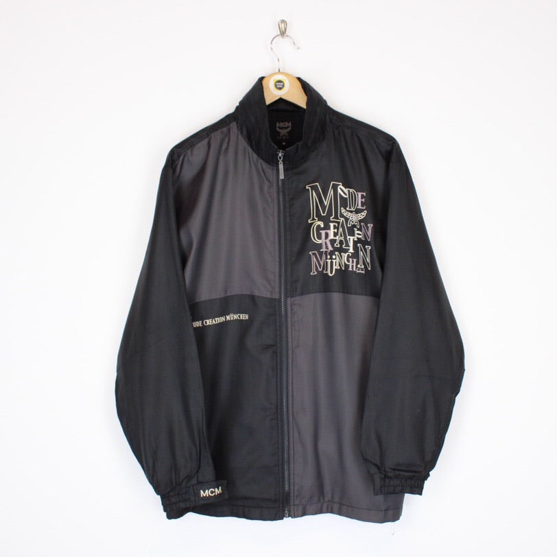 Vintage 90's MCM Grey and Black Zip Up Spellout Jacket Size on label: Medium Our recommended size: Medium Pit to pit (inches): 23 Length (inches): 29 All products listed are vintage unless stated otherwise in the description. These items are pre-loved and pre-worn, resulting in small signs of wear and minor fading. We think this adds to their unique authenticity, but if an item has any major flaws these will be stated below. Please contact us if you have any further questions!
