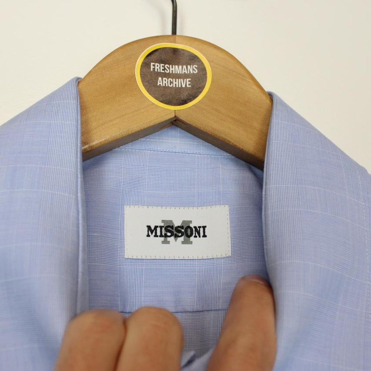 Vintage 00s Missoni Blue and White Checked Long Sleeve Shirt