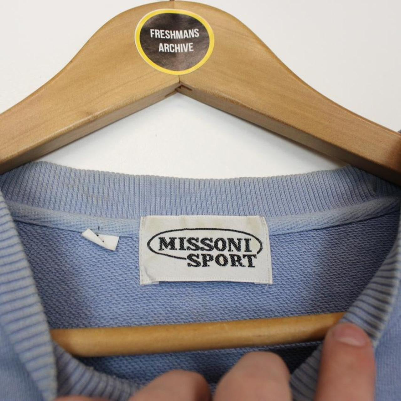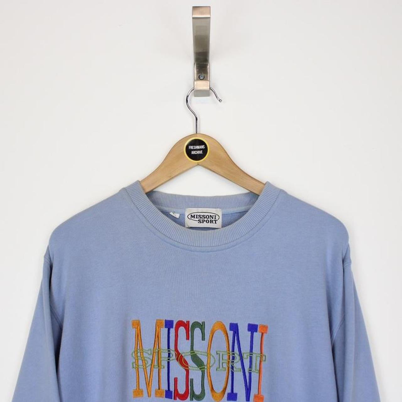 Vintage 90s Missoni Blue and Multicoloured Spellout Sweatshirt Jumper