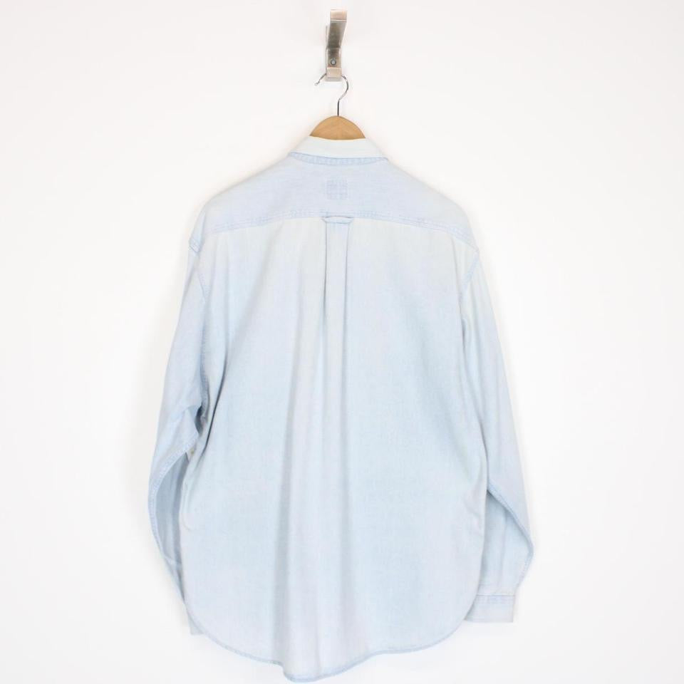 Vintage 90s Moschino Jeans Light Blue Spellout Long Sleeve Denim Shirt