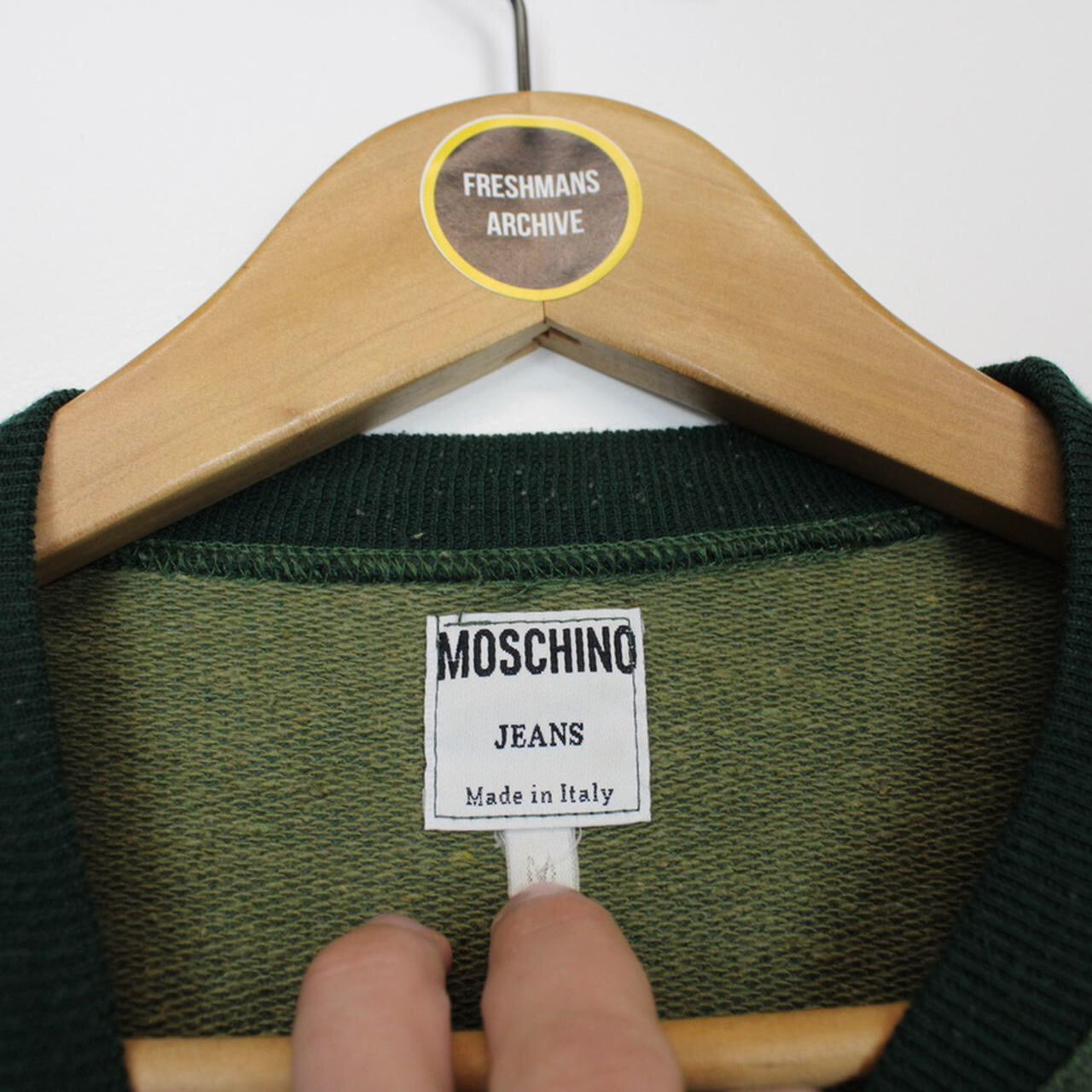 Vintage 90's Moschino Jeans Green Crew Neck Spellout Sweatshirt Jumper Size on label: Medium Our recommended size: Medium Pit to pit (inches): 23 Length (inches): 26 All products listed are vintage unless stated otherwise in the description. These items are pre-loved and pre-worn, resulting in small signs of wear and minor fading. We think this adds to their unique authenticity, but if an item has any major flaws these will be stated below. Please contact us if you have any further questions!