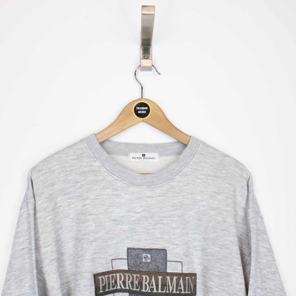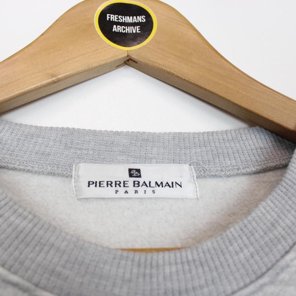 Vintage 90s Pierre Balmain Paris Grey Spellout Sweatshirt Jumper