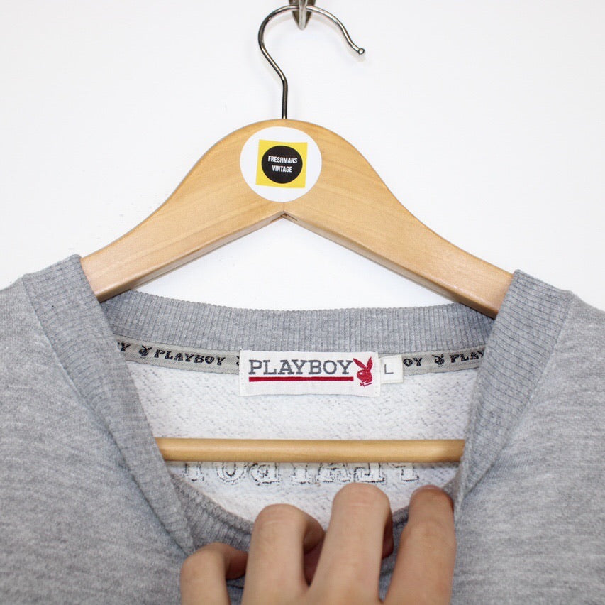 Vintage 90's Playboy Grey Crew Neck Spellout Sweatshirt Jumper Size on label: Women's Large Our recommended size: Women's Large Pit to pit (inches): 24 Length (inches): 25.5 All products listed are vintage unless stated otherwise in the description. These items are pre-loved and pre-worn, resulting in small signs of wear and minor fading. We think this adds to their unique authenticity, but if an item has any major flaws these will be stated below. Please contact us if you have any further questions!
