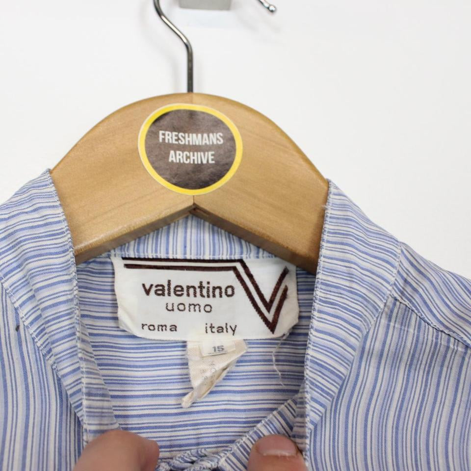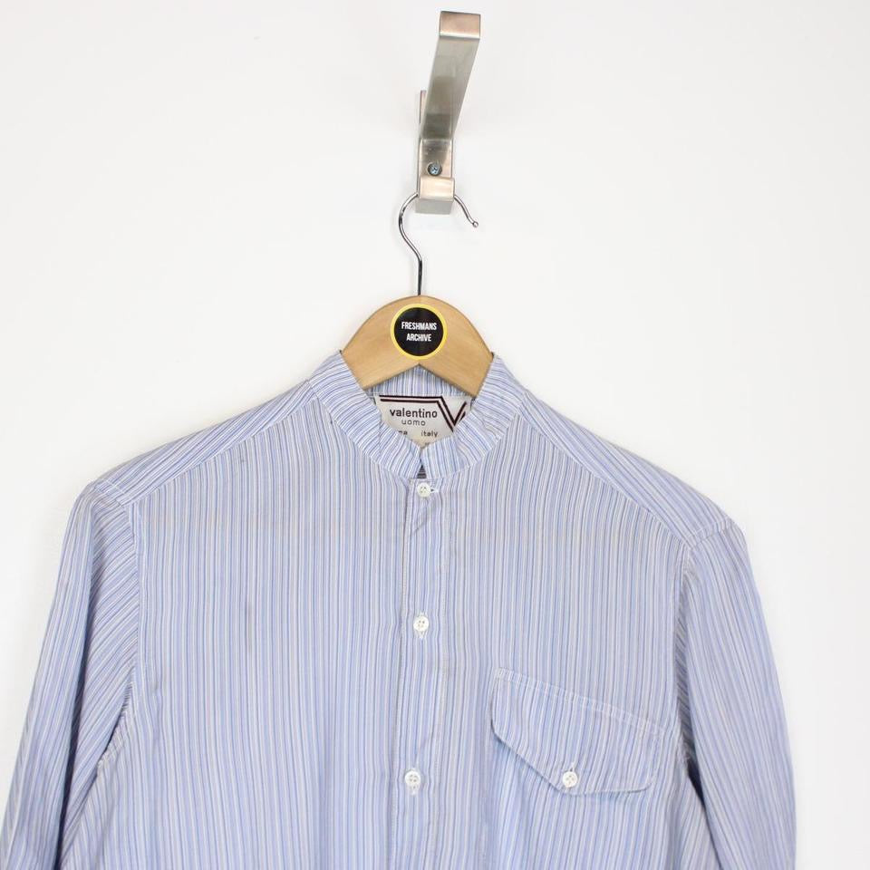 Vintage 90s Valentino Blue and White Striped Short Sleeve Silk Shirt