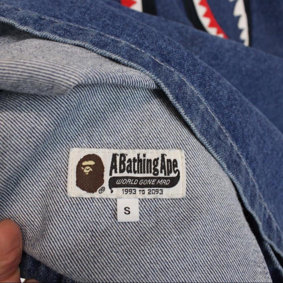 Bape Blue Button Up Shark Embroidery Denim Coverall Jacket