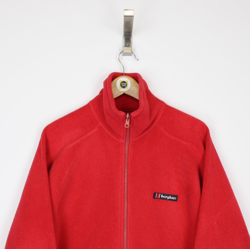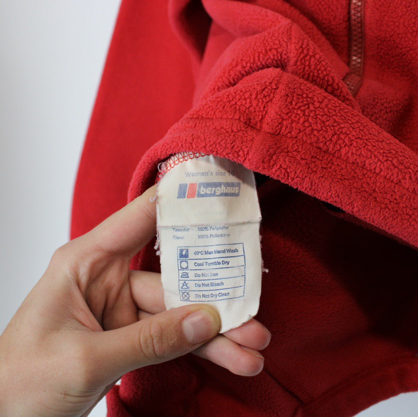 Vintage 90's Berghaus Red Full Zip Spellout Fleece Jacket Size on label: UK 10 Our recommended size: UK 10 Pit to pit (inches): 22.5 Length (inches): 26 All products listed are vintage unless stated otherwise in the description. These items are pre-loved and pre-worn, resulting in small signs of wear and minor fading. We think this adds to their unique authenticity, but if an item has any major flaws these will be stated below. Please contact us if you have any further questions!