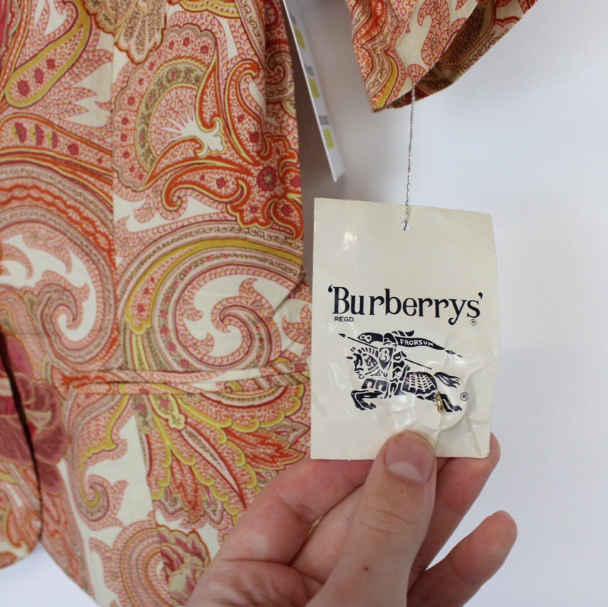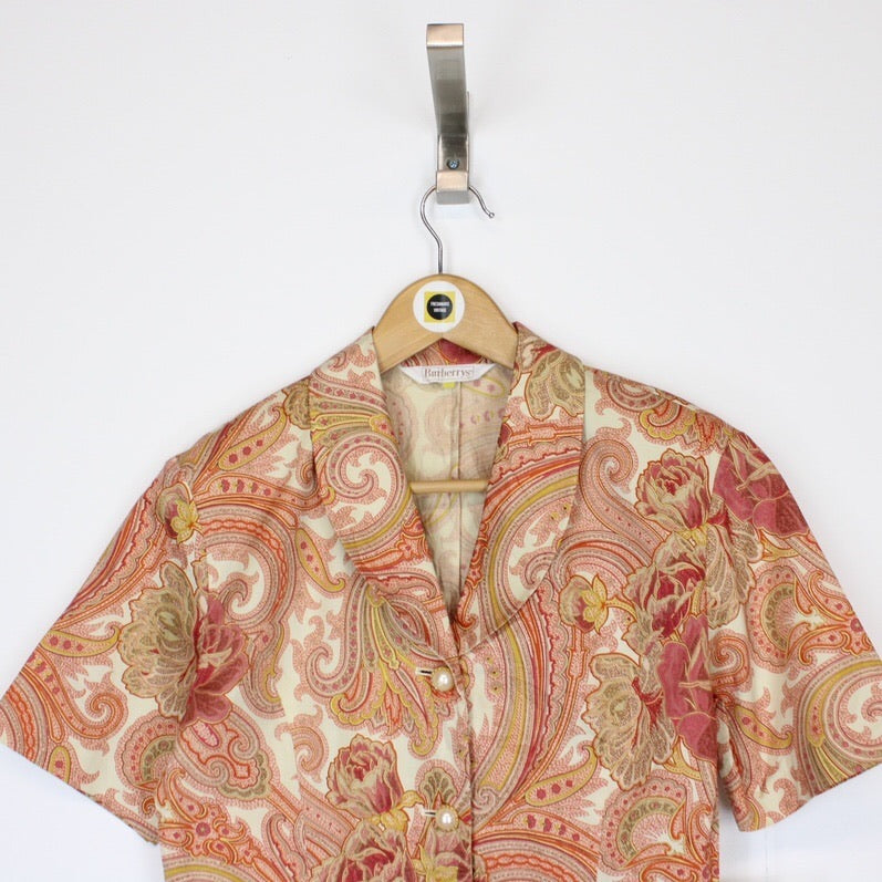 Vintage 90's Burberry Multicoloured Paisley Print Short Sleeve Blouse Shirt - New Old Stock / Has Original Tags Attached - Size on label: N/A Our recommended size: Women's Small Pit to pit (inches): 16.5 Length (inches): 21 All products listed are vintage unless stated otherwise in the description. These items are pre-loved and pre-worn, resulting in small signs of wear and minor fading. We think this adds to their unique authenticity, but if an item has any major flaws these will be stated below. Please contact us if you have any further questions!