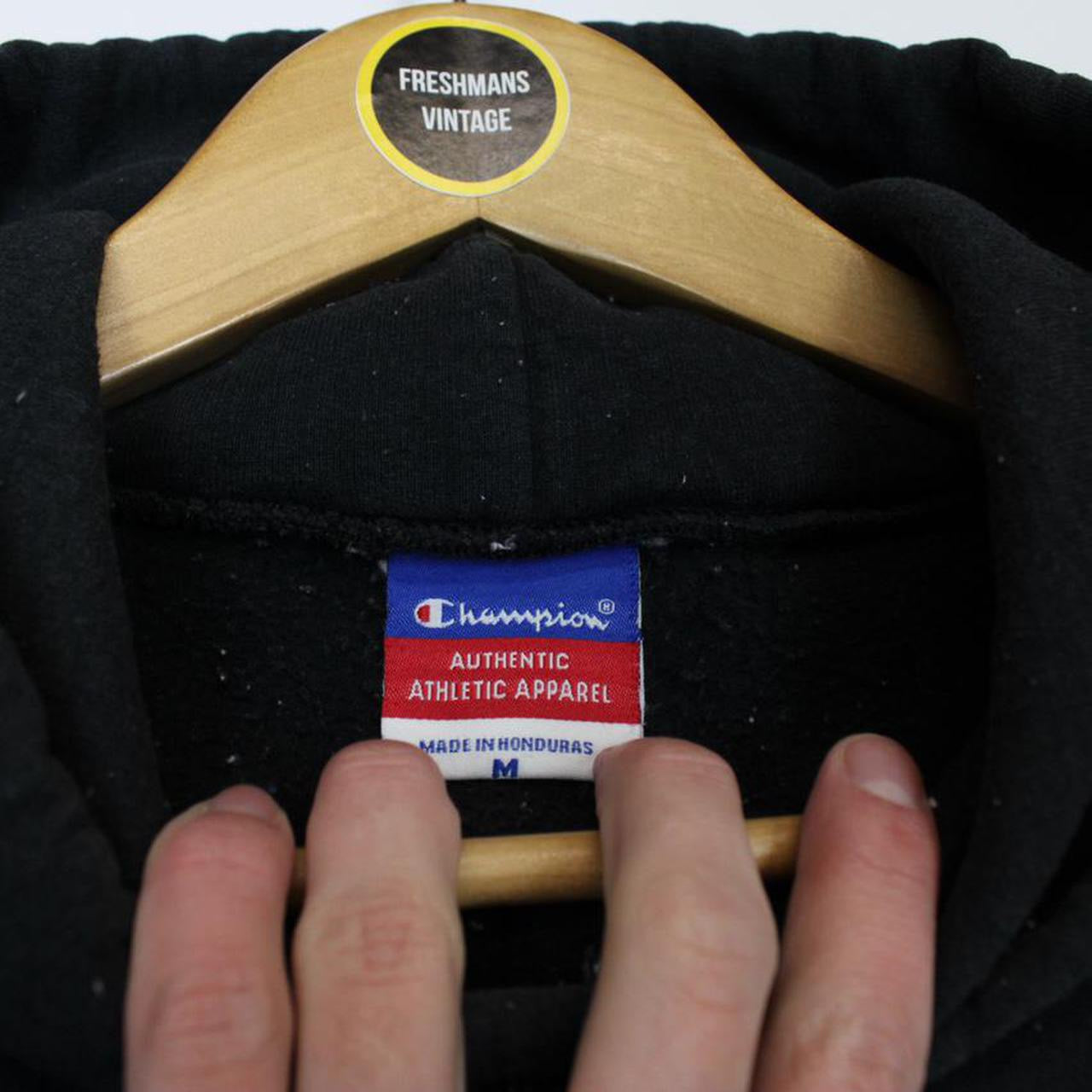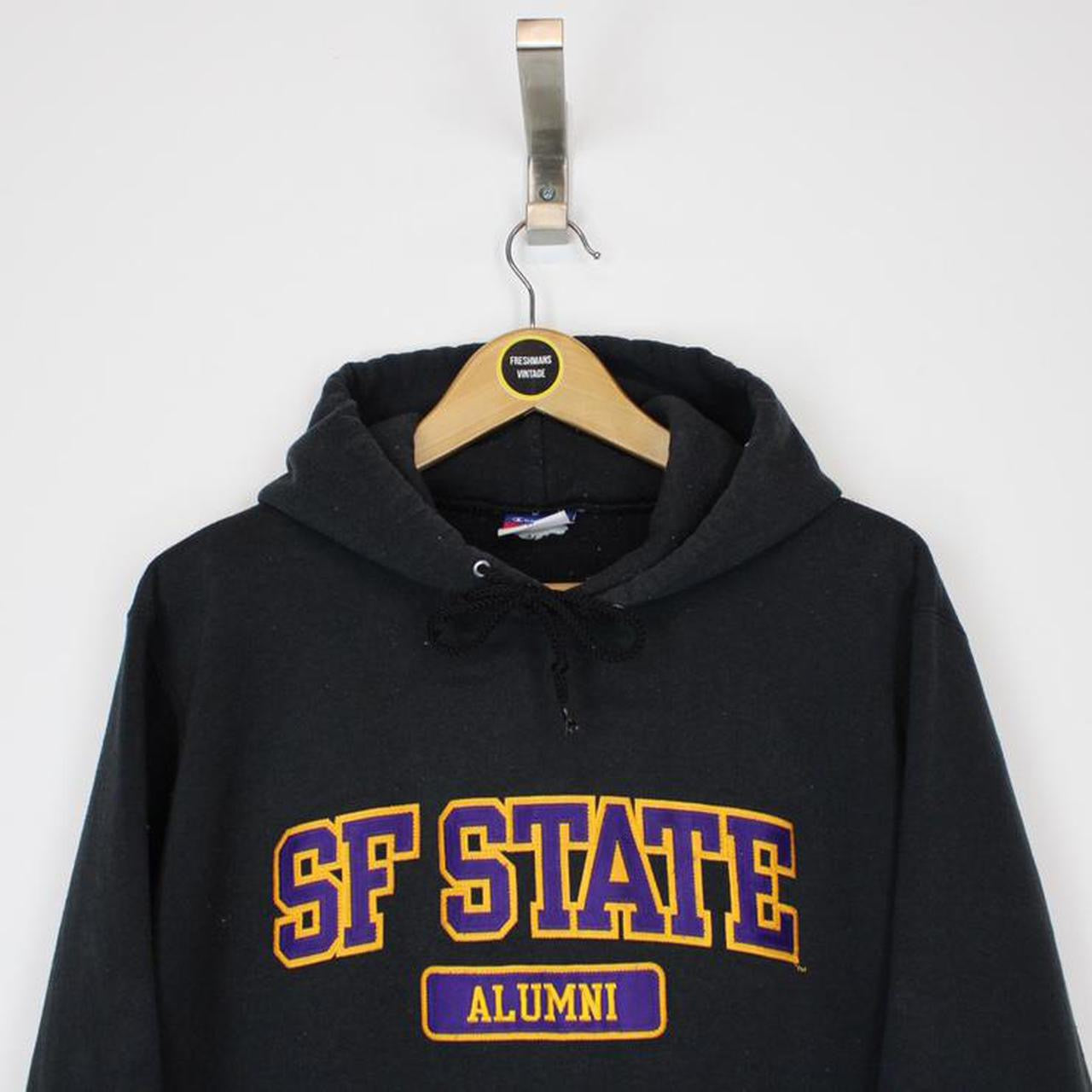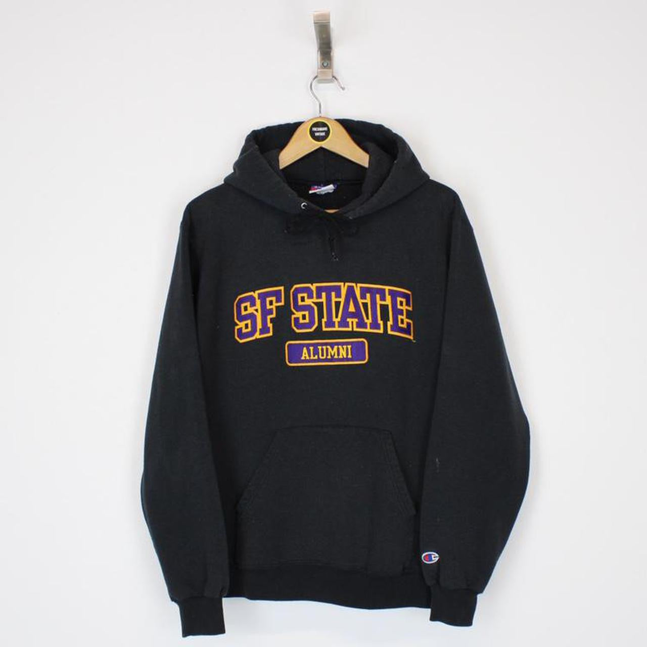 Vintage 90's Champion San Francisco USA Black Pullover Spellout Hoodie Jumper Size on label: Medium Our recommended size: Small Pit to pit (inches): 19.5 Length (inches): 25 All products listed are vintage unless stated otherwise in the description. These items are pre-loved and pre-worn, resulting in small signs of wear and fading. We think this adds to their unique authenticity, but if an item has any major flaws these will be stated. - The hoodie does have a small mark to the left sleeve, this is reflected in the price Please contact us if you have any further questions!