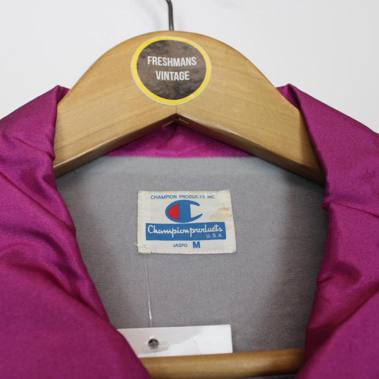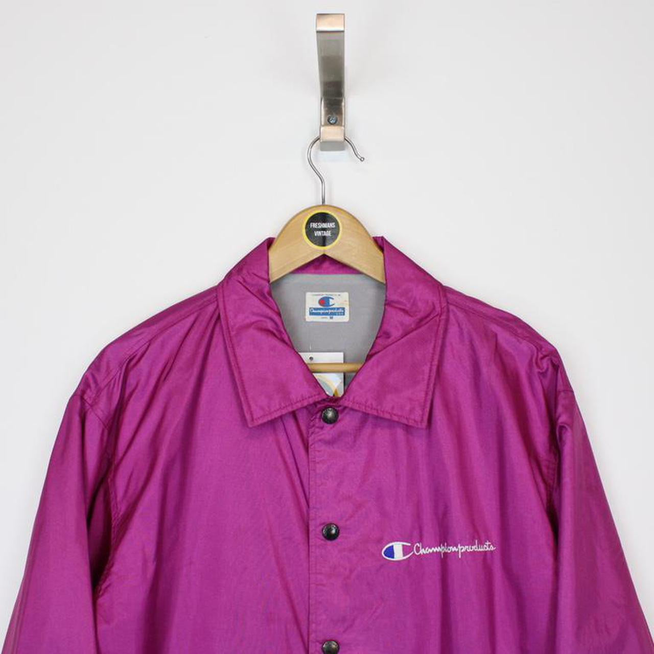 Vintage 90's Champion Metallic Pink Spellout Coach Jacket Size on label: Medium Our recommended size: Medium Pit to pit (inches): 23 Length (inches): 29 All products listed are vintage unless stated otherwise in the description. These items are pre-loved and pre-worn, resulting in small signs of wear and sometimes minor flaws. We think this adds to their unique authenticity, but if an item has any bigger flaws these will be stated. Please contact us if you have any further questions!