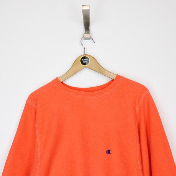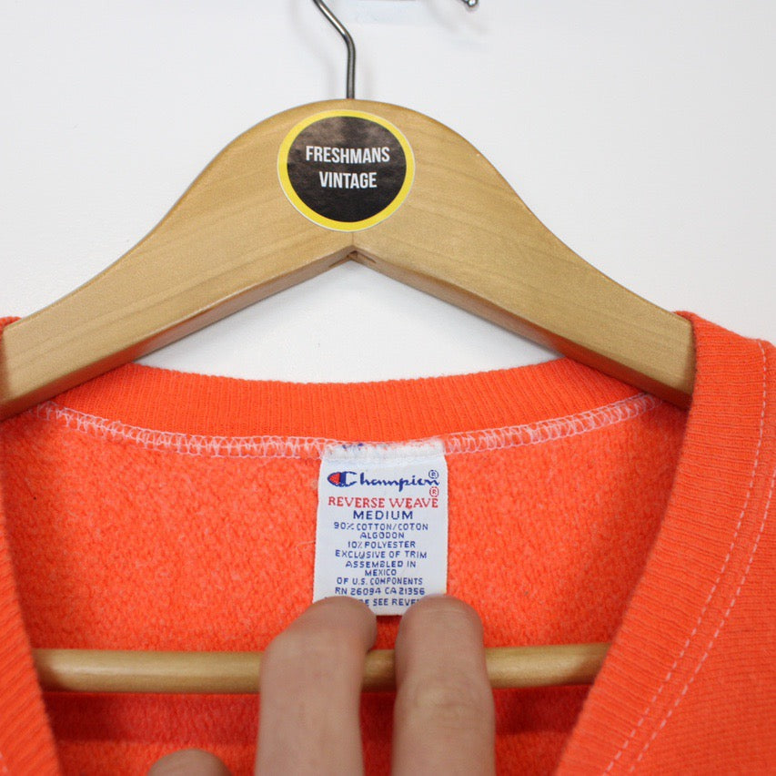 Vintage 90's Champion Reverse Weave Orange Crew Neck Sweatshirt Jumper Size on label: Medium Our recommended size: Medium Pit to pit (inches): 19.5 Length (inches): 28 All products listed are vintage unless stated otherwise in the description. These items are pre-loved and pre-worn, resulting in small signs of wear and minor fading. We think this adds to their unique authenticity, but if an item has any major flaws these will be stated below. - The sweatshirt does have a faint mark to the right shoulder, this is reflected in the price Please contact us if you have any further questions!
