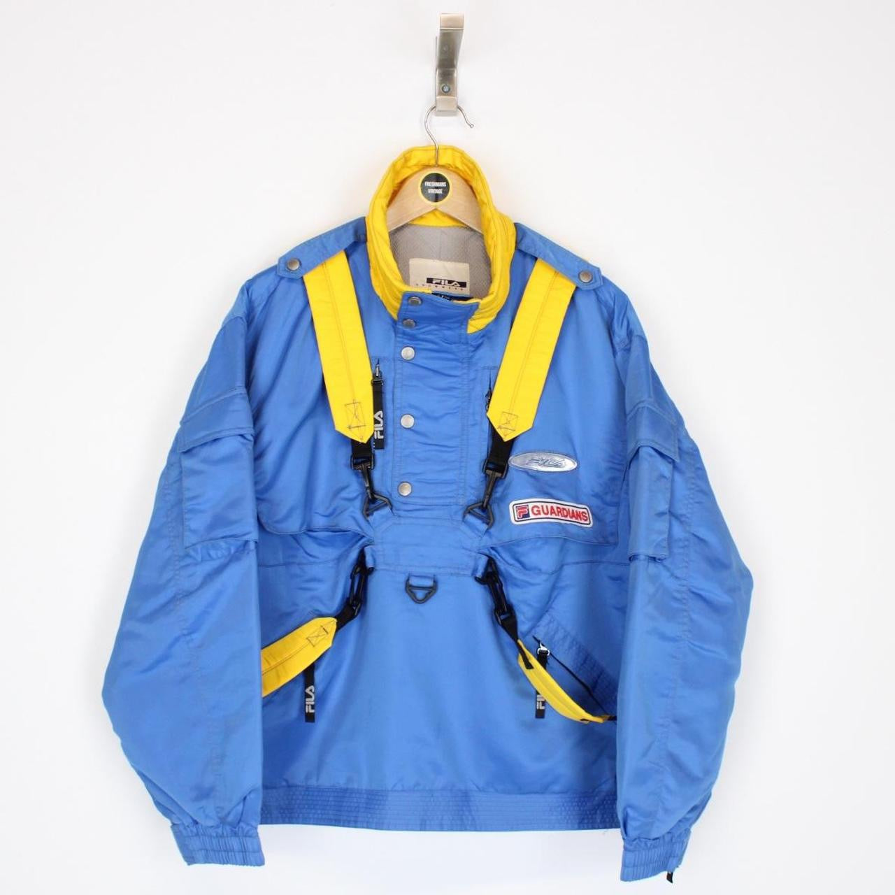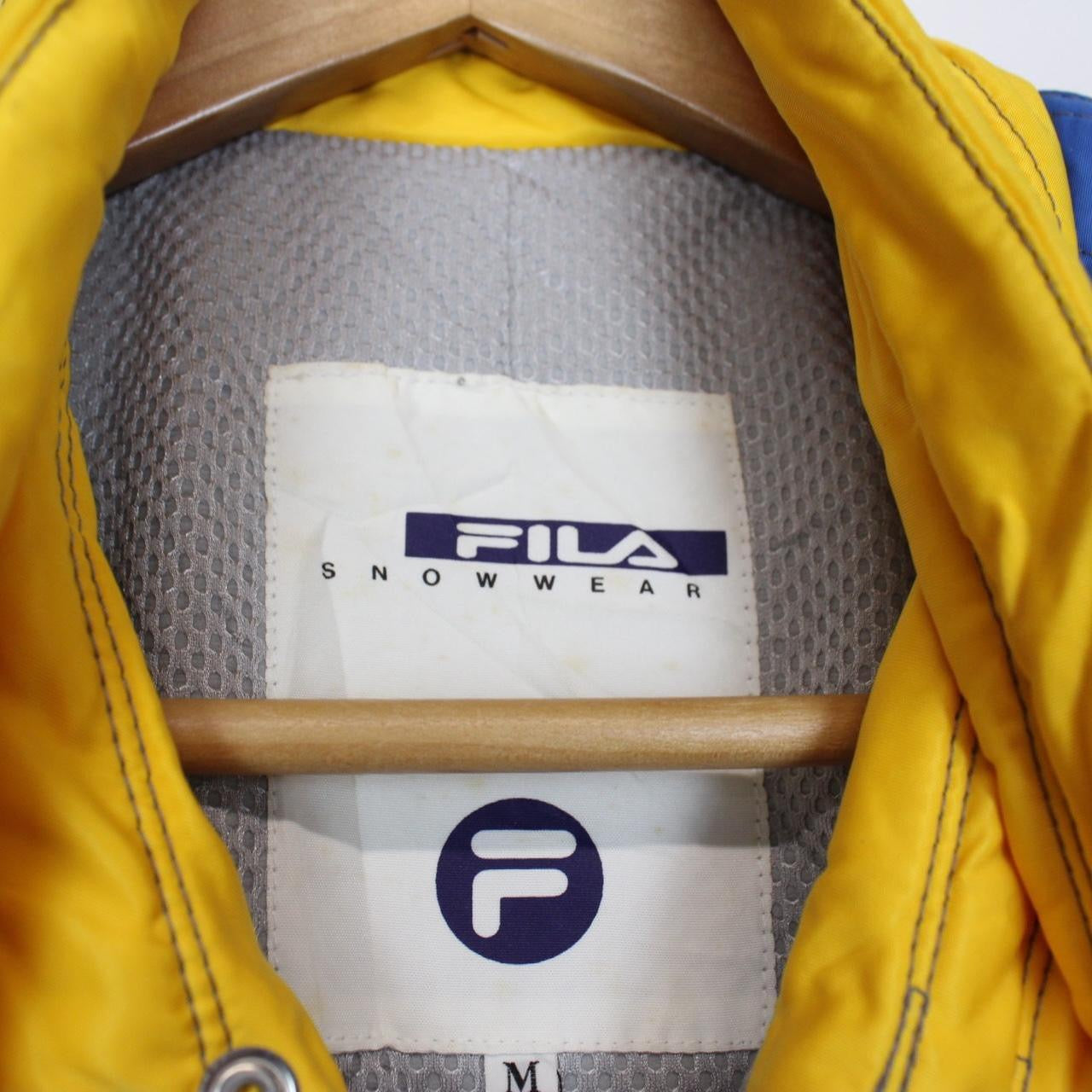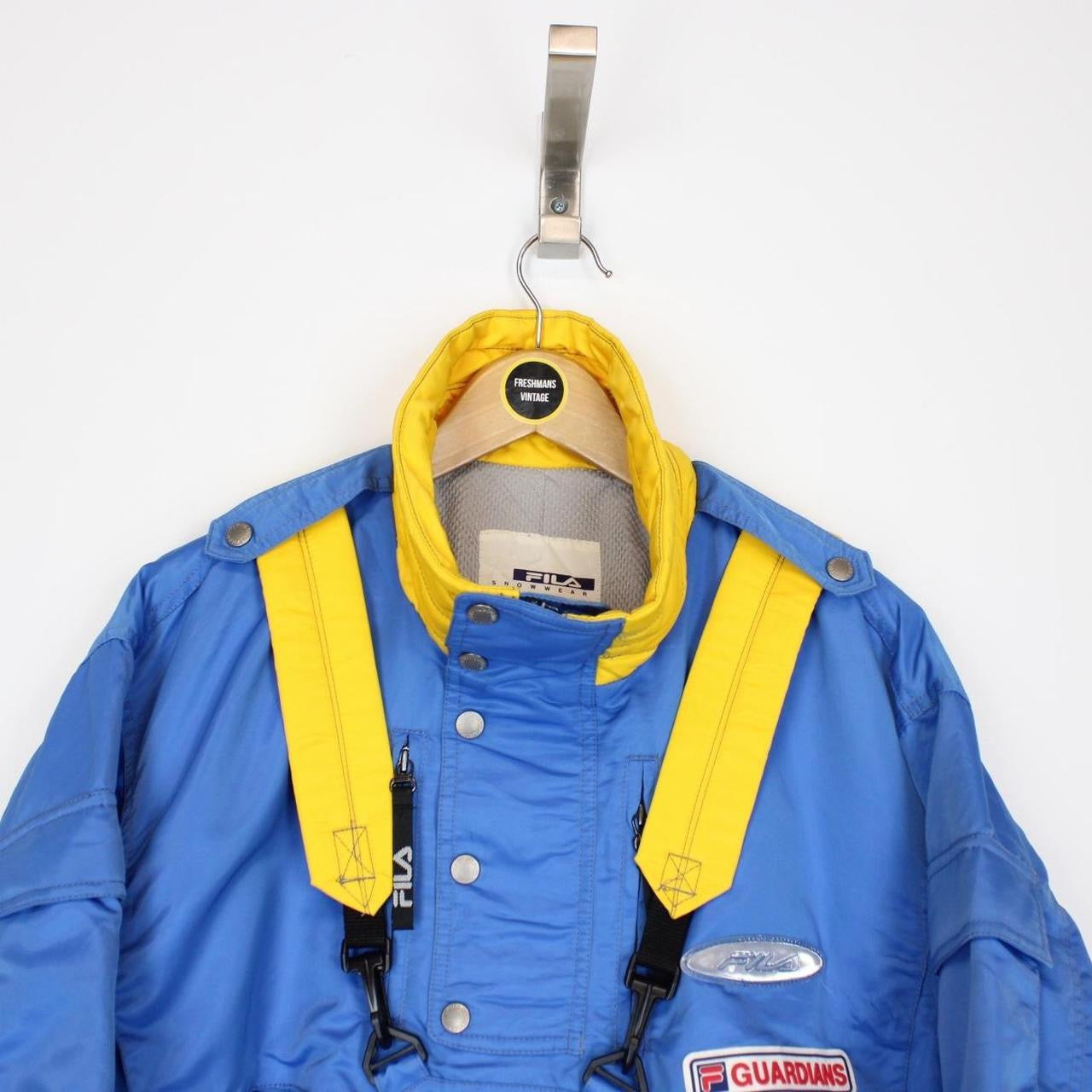 Vintage 90s Fila Blue and Yellow Full Zip Padded Waterproof Skiing Jacket Comes with a built in rucksack