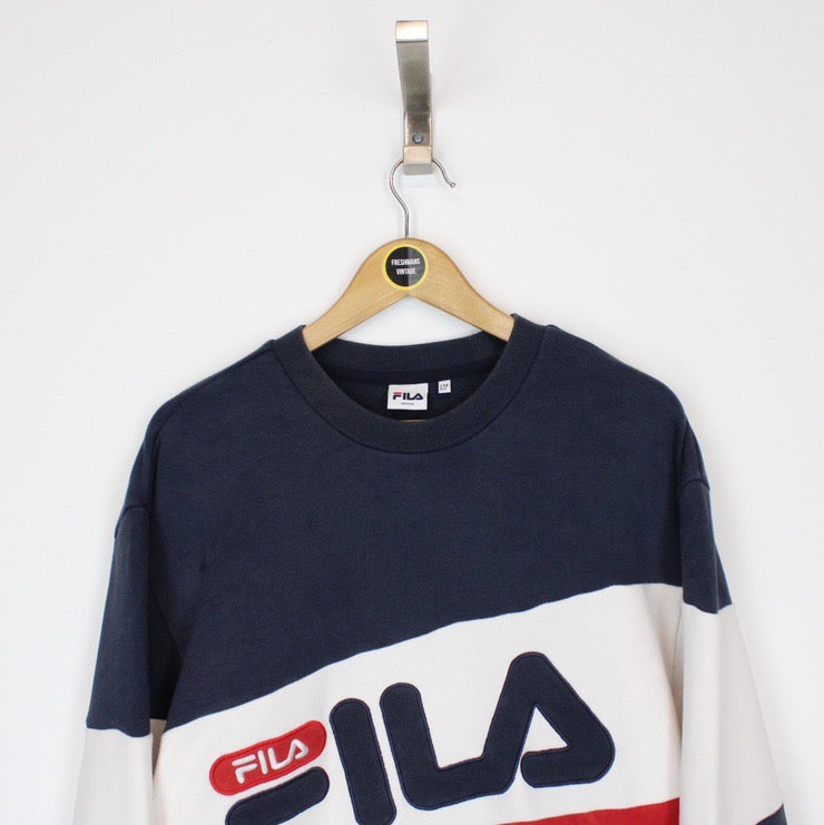 Vintage 00's Fila Navy Blue, Red and White Crew Neck Spellout Sweatshirt Jumper Size on label: Medium Our recommended size: Medium Pit to pit (inches): 20.5 Length (inches): 27.5 All products listed are vintage unless stated otherwise in the description. These items are pre-loved and pre-worn, resulting in small signs of wear and minor fading. We think this adds to their unique authenticity, but if an item has any major flaws these will be stated below. - The sweatshirt does have a pinhole to the back, this is reflected in the price Please contact us if you have any further questions!