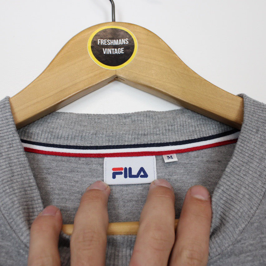 Vintage 00's Fila Grey Crew Neck Spellout Sweatshirt Jumper Size on label: Medium Our recommended size: Medium Pit to pit (inches): 21 Length (inches): 25.5 All products listed are vintage unless stated otherwise in the description. These items are pre-loved and pre-worn, resulting in small signs of wear and minor fading. We think this adds to their unique authenticity, but if an item has any major flaws these will be stated below. Please contact us if you have any further questions!