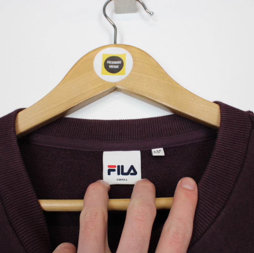 Vintage 00's Fila Plum, Cream and Grey Crew Neck Spellout Sweatshirt Jumper Size on label: Small Our recommended size: Small Pit to pit (inches): 20 Length (inches): 26.5 All products listed are vintage unless stated otherwise in the description. These items are pre-loved and pre-worn, resulting in small signs of wear and minor fading. We think this adds to their unique authenticity, but if an item has any major flaws these will be stated below. - The sweatshirt has a light mark to the cream section to the front, this is reflected in the price Please contact us if you have any further questions!