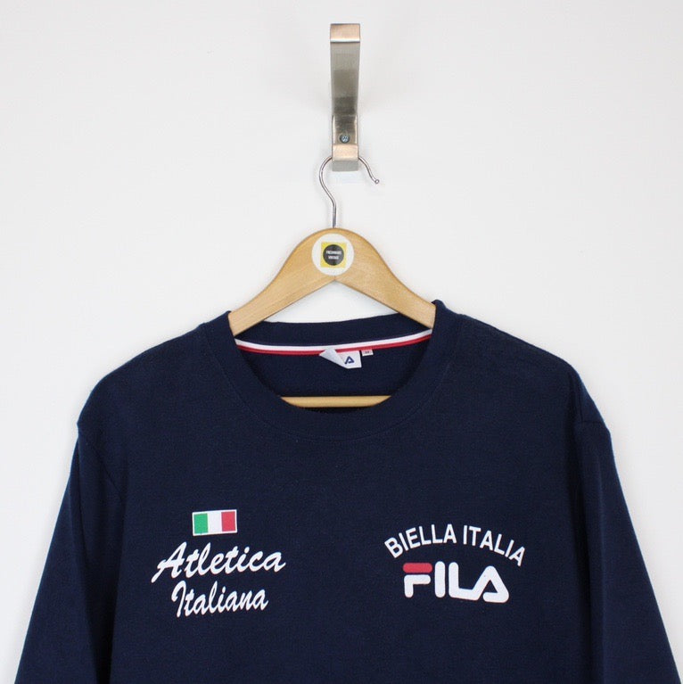 Vintage 00's Fila Navy Blue Crew Neck Spellout Sweatshirt Jumper Size on label: Medium Our recommended size: Small Pit to pit (inches): 21.5 Length (inches): 25 All products listed are vintage unless stated otherwise in the description. These items are pre-loved and pre-worn, resulting in small signs of wear and minor fading. We think this adds to their unique authenticity, but if an item has any major flaws these will be stated below. Please contact us if you have any further questions!