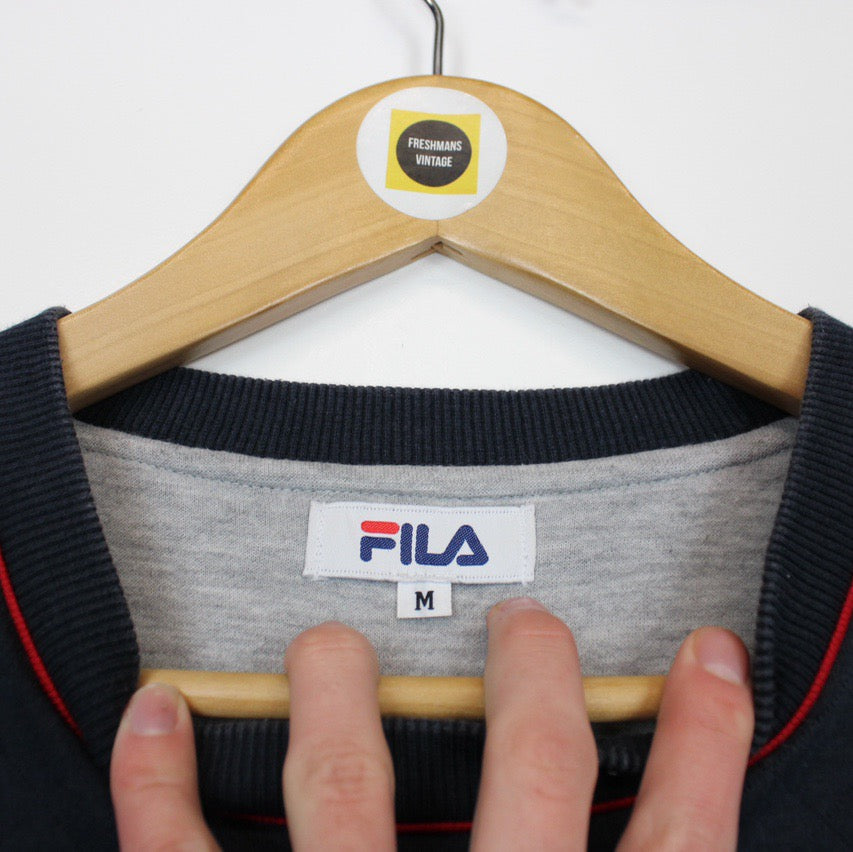 Vintage 00's Fila Navy Blue Crew Neck Spellout Sweatshirt Jumper Size on label: Medium Our recommended size: Small Pit to pit (inches): 22 Length (inches): 25 All products listed are vintage unless stated otherwise in the description. These items are pre-loved and pre-worn, resulting in small signs of wear and minor fading. We think this adds to their unique authenticity, but if an item has any major flaws these will be stated below. Please contact us if you have any further questions!