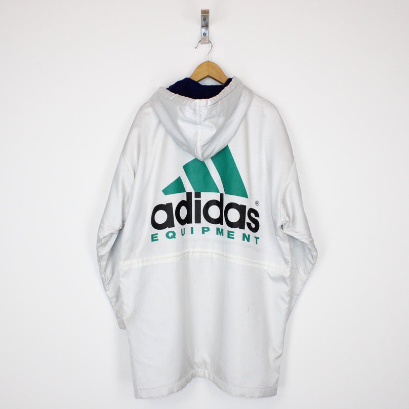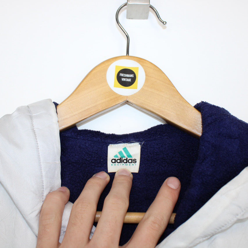 Vintage 90's Adidas Equipment White Full Zip Spellout Fleece Lined Jacket Size on label: Large Our recommended size: Oversized Large Pit to pit (inches): 28 Length (inches): 35 All products listed are vintage unless stated otherwise in the description. These items are pre-loved and pre-worn, resulting in small signs of wear and minor fading. We think this adds to their unique authenticity, but if an item has any major flaws these will be stated below. - The jacket has some prominent marking throughout, this is reflected in the price Please contact us if you have any further questions!