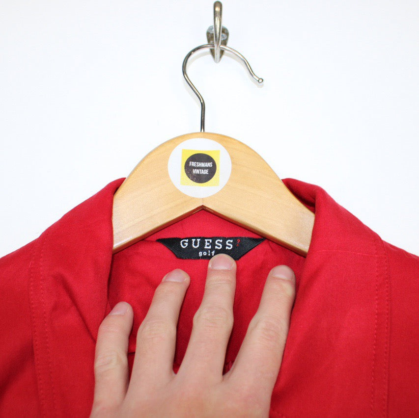Vintage Guess by Georges Marciano Red Spellout Harrington Jacket Size on label: Small Our recommended size: Small Pit to pit (inches): 22 Length (inches): 24 All products listed are vintage unless stated otherwise in the description. These items are pre-loved and pre-worn, resulting in small signs of wear and sometimes minor flaws. We think this adds to their unique authenticity, but if an item has any bigger flaws these will be stated. Please contact us if you have any further questions!