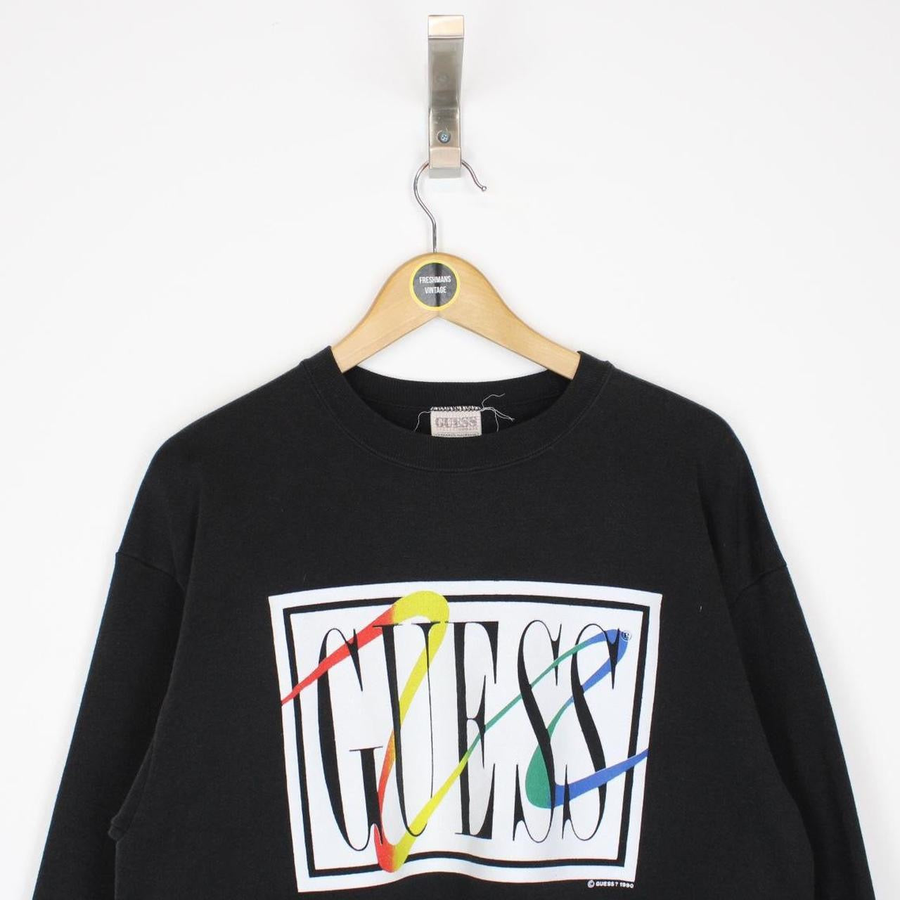 Vintage 1990 Guess Black Crew Neck Spellout Sweatshirt Jumper